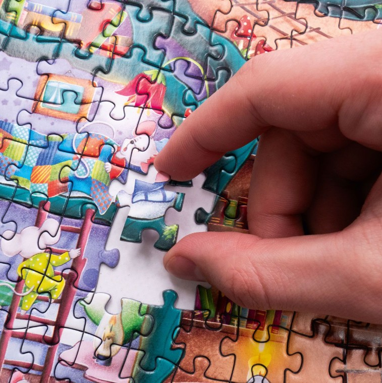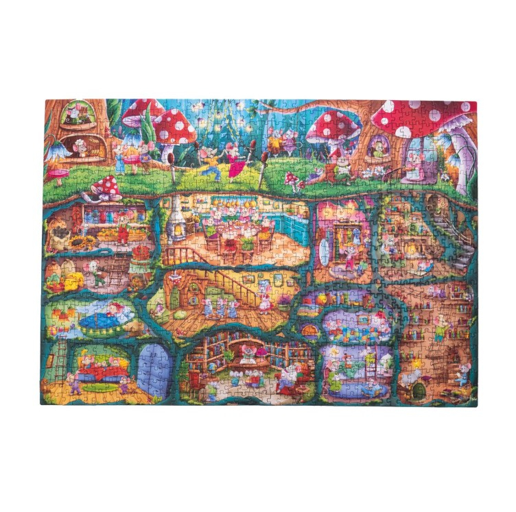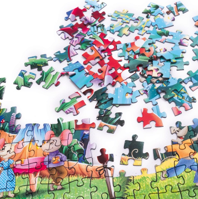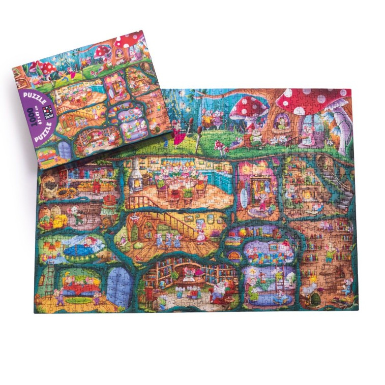 Збираючи пазл Будиночок мишенят, діти та дорослі поринуть у життя великої родини мишенят. Ви побачите кухню, де кипить робота, дитячу, наповнену іграшками, гардероб з милими вбраннями, книгарню та багато інших кімнат. Кожна миша зайнята своєю справою — готує, читає, грається або заглядає у вікно. Це не просто головоломка — це справжнє віконце у казковий підземний світ.