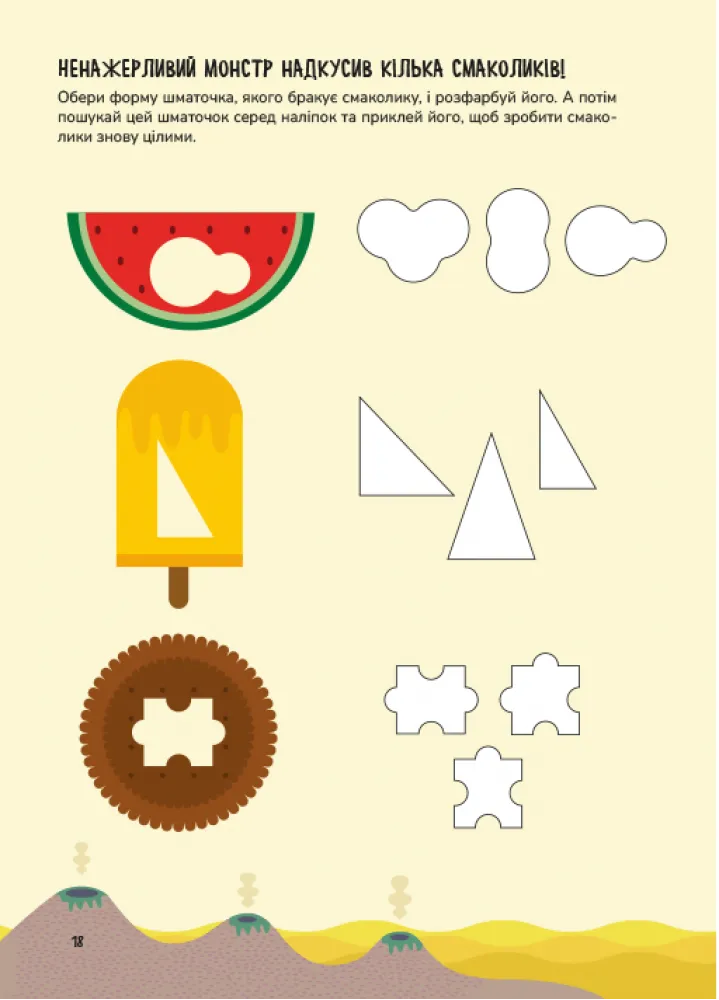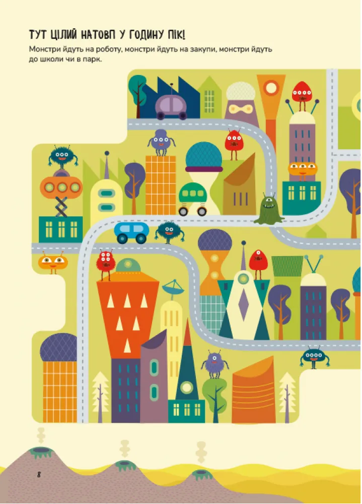 Освітня книжка для дітей Як стати математичним монстром — це сучасний посібник з математики, створений для захопливого навчання через гру. Видавці разом із експерткою з ігрового навчання об'єднали навчальні завдання, яскраві візуалізації та понад 100 наліпок, щоб процес засвоєння математичних понять став не тільки корисним, а й веселим.
