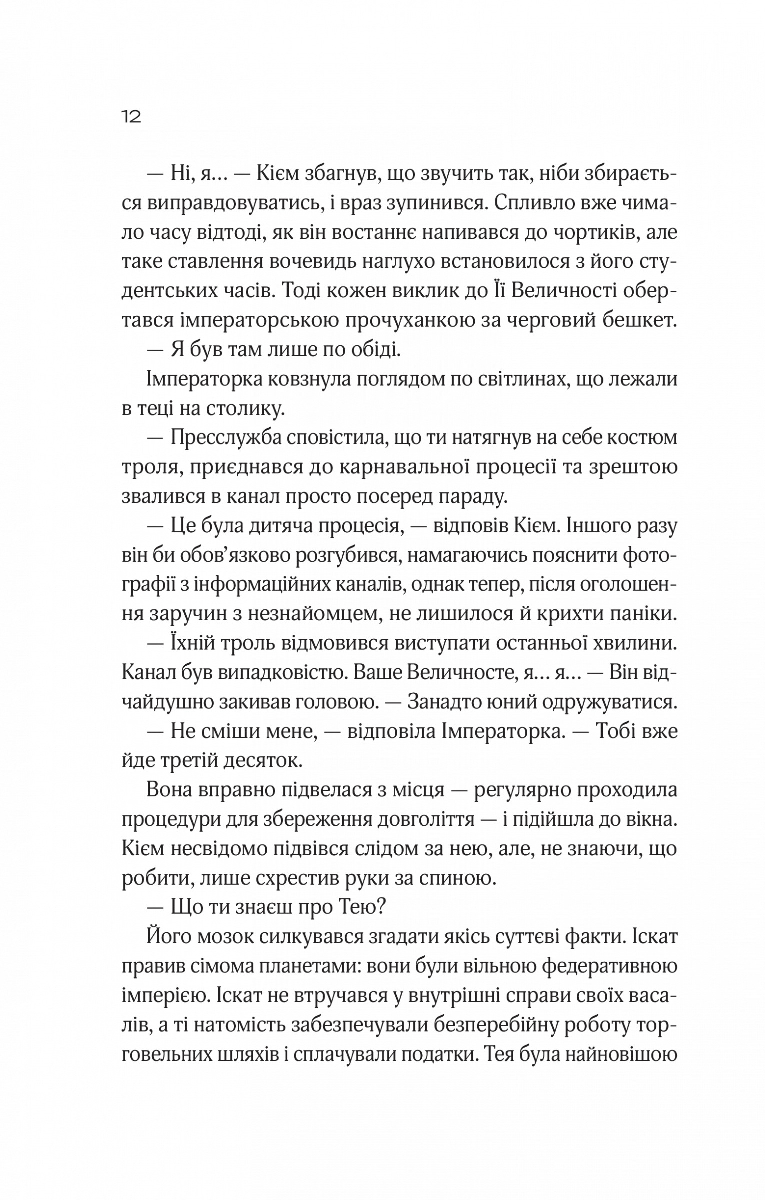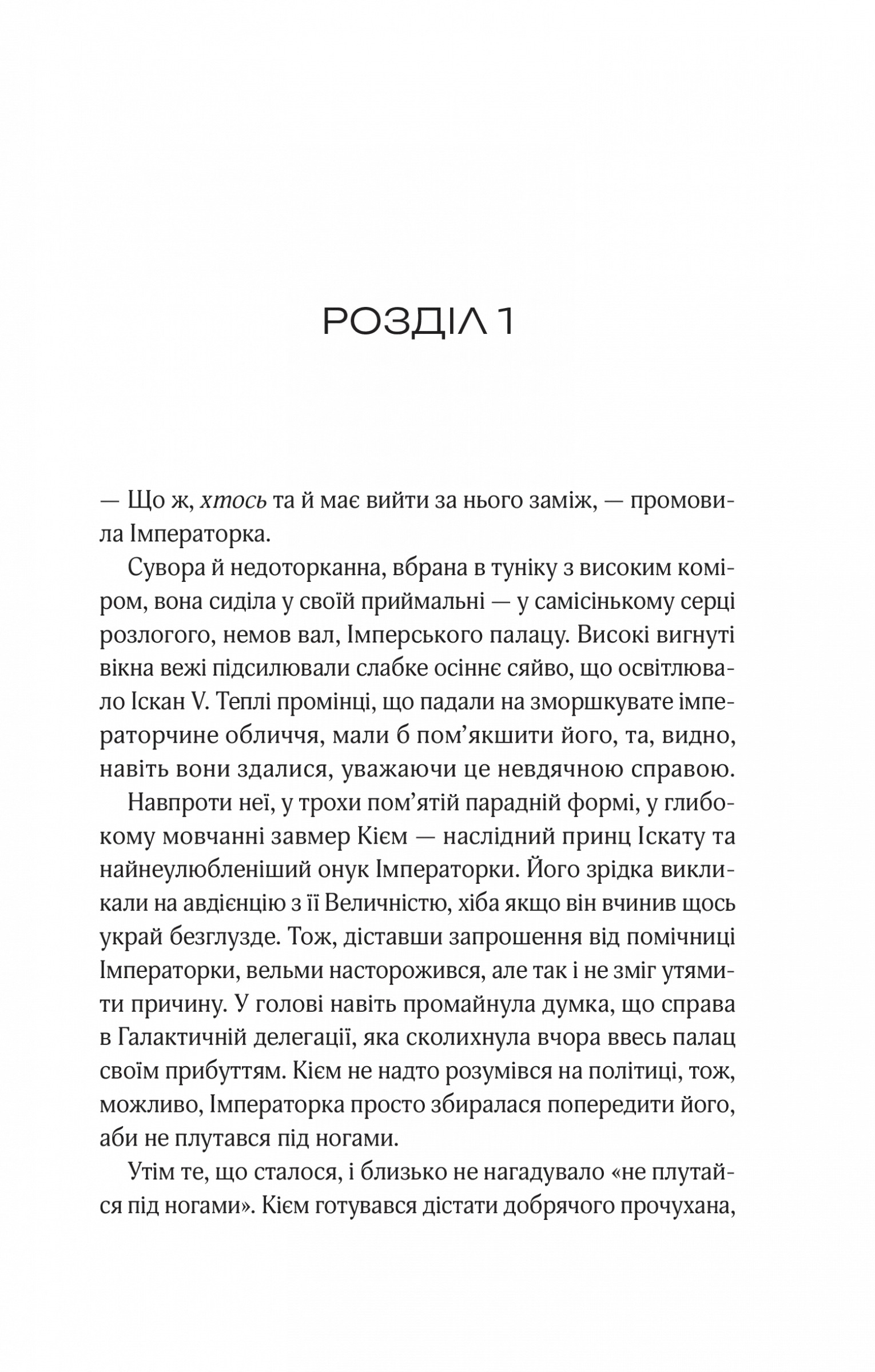 Принц Кієм – харизматичний, але нестриманий член правлячої родини – змушений одружитися з Джайнаном, вдівцем попереднього імператорського представника. Цей союз покликаний укріпити зв’язок між Іскатом і васальною планетою Теа. Однак шлюб перетворюється на несподіване випробування, коли виявляється, що попередній чоловік Джайнана загинув не випадково, а був учасником масштабної змови проти імперії.