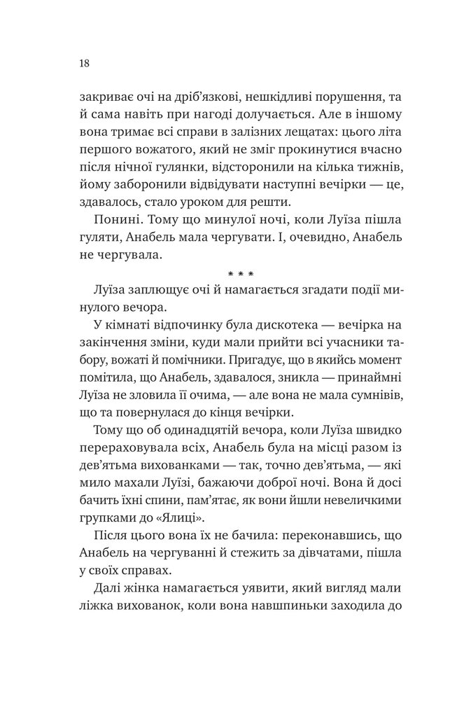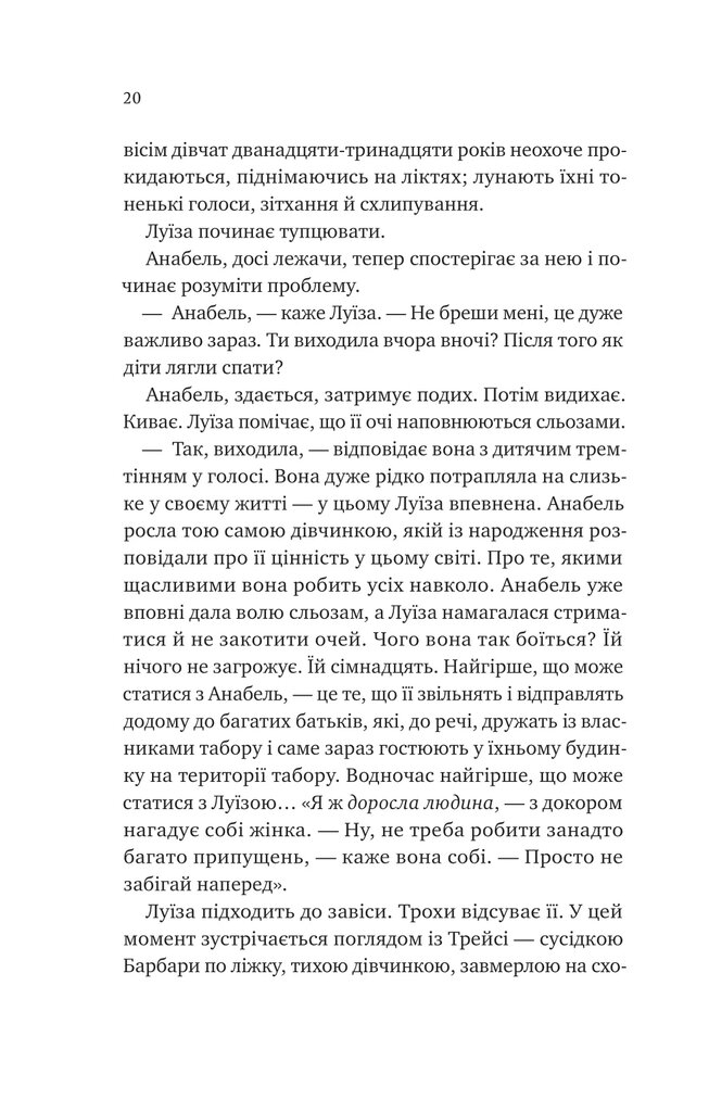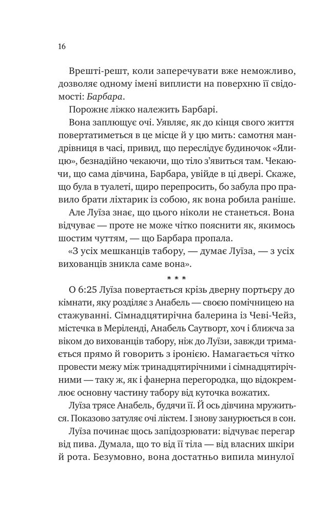 Події роману розгортаються влітку 1975 року в мальовничих, але водночас похмурих Адірондакських горах. З табору зникає тринадцятирічна Барбара Ван Лаар — донька заможних власників цього закладу. Фактично, це вже друге зникнення в родині: 14 років тому безслідно пропав її старший брат. Історія пронизана загадками, мовчанням і нерозгаданими трагедіями. У процесі пошуків викриваються родинні таємниці та соціальні драми, які досі залишались у тіні.
