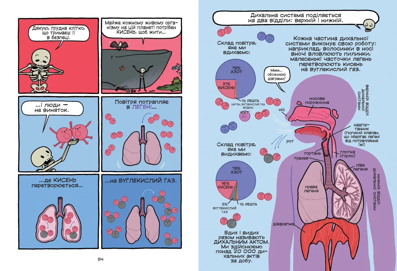 Завдяки формату коміксу інформація подається легко і зрозуміло. Діти не лише дізнаються, як функціонують серце, легені чи мозок, а й зрозуміють, що впливає на їхню роботу позитивно, а що — негативно. Саме тому книга сприяє не тільки розширенню кругозору, а й формуванню здорових звичок в юному віці.