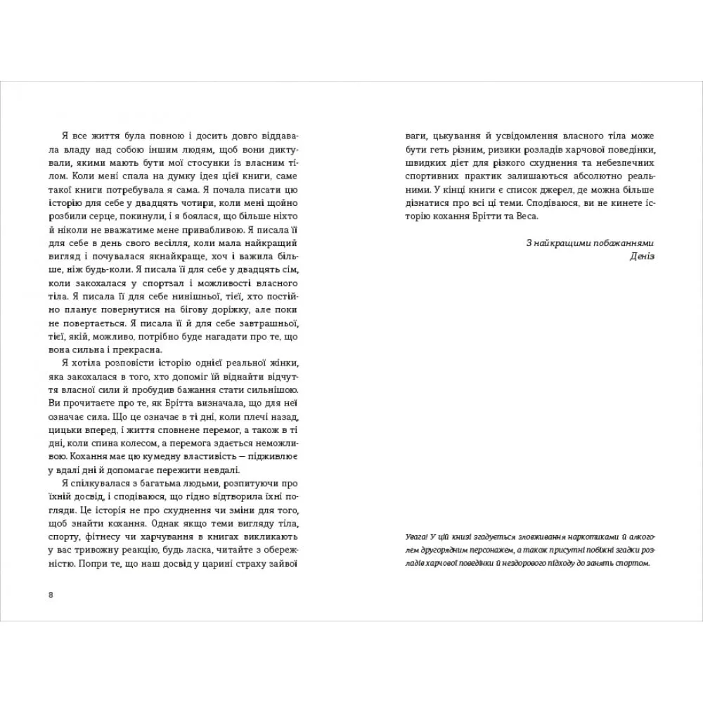 Книга Найшвидший спосіб закохатися від американської авторки Деніз Вільямс — це захоплива романтична історія, яка поєднує фітнес, кар'єру та кохання. Головна героїня Брітта отримує важливе професійне завдання: зробити ґрунтовний матеріал про новий додаток FitMe. Але її робота несподівано набуває нового сенсу, коли вона знайомиться з Весом — генеральним директором додатку, який повернувся до тренерської діяльності.