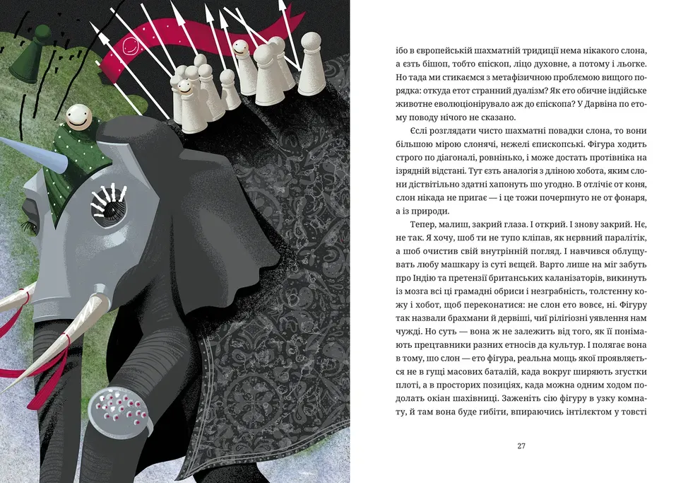 - Нестандартне трактування теми шахів — не як спорту, а як засобу пізнання;