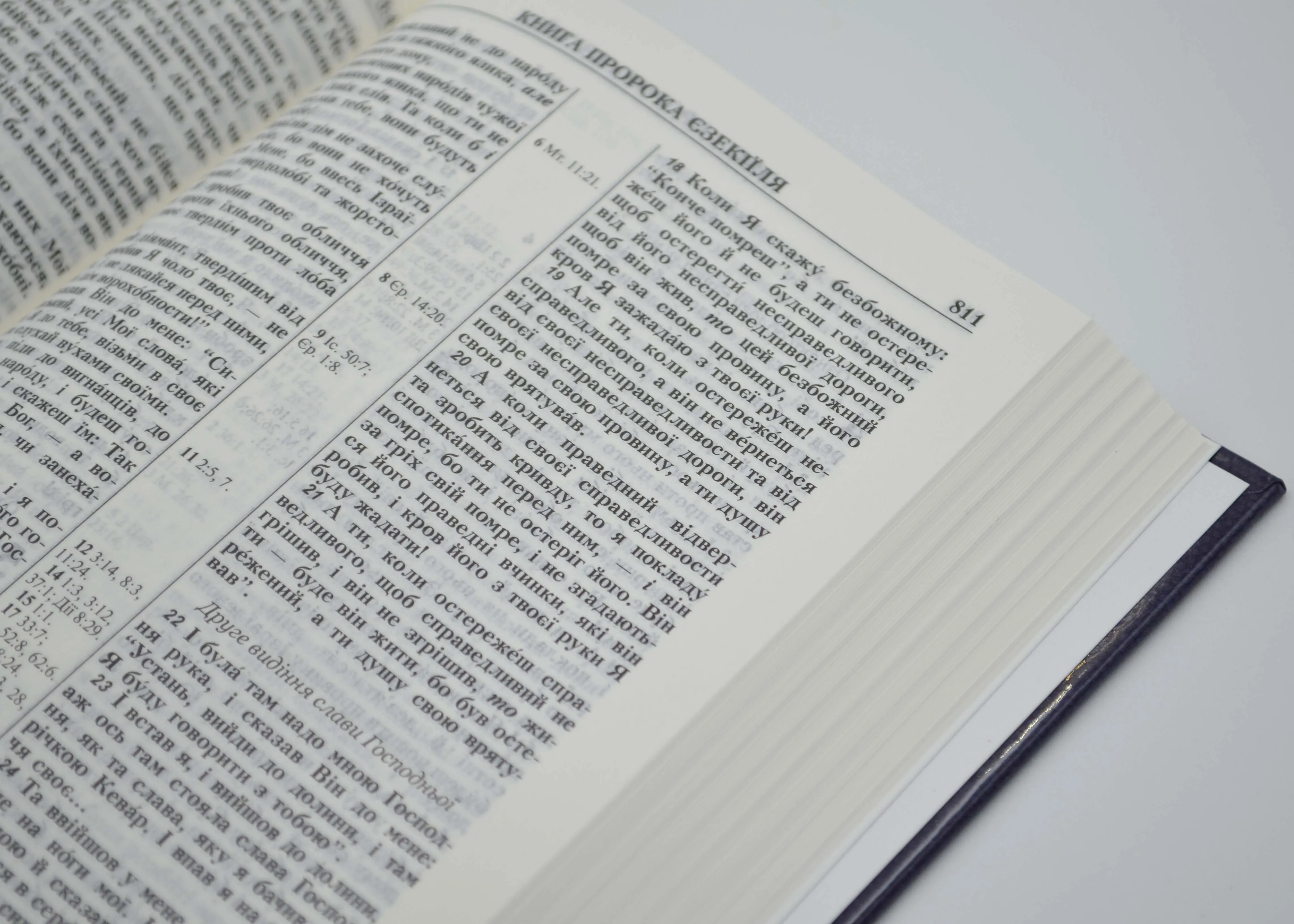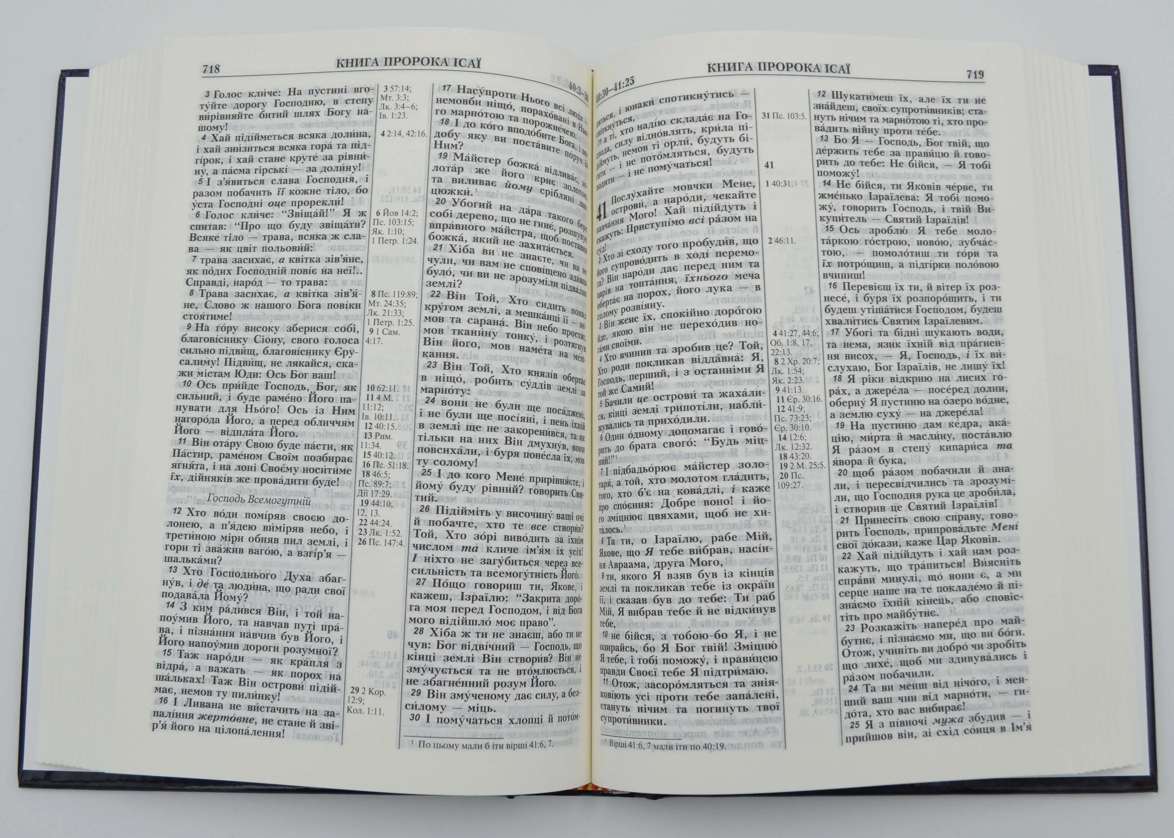 Біблія або книги Святого Письма Старого й Нового Заповіту (укр. мовою).Книги Святого Письма Старого й Нового Заповіту, перекладені українською мовою проф. Іваном Огієнком із мови давньоєврейської й грецької.Текст у дві колонки з паралельними місцями посередині, виноски-пояснення внизу сторінки. Кольорові мапи на форзацах видання.