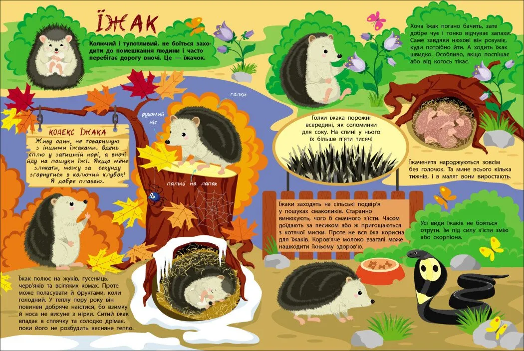 - їжачки шукають здобич та сховища;