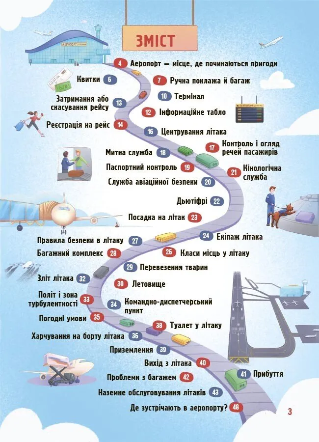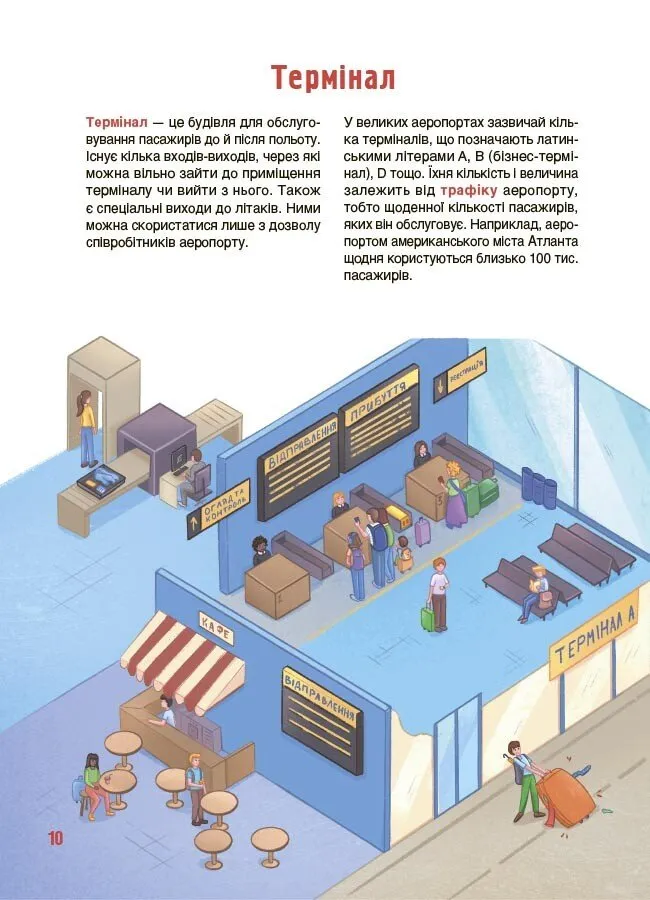 Це видання розповідає, як функціонують термінали, як злітно-посадкові смуги забезпечують безпеку та як проходить процес посадки й зльоту. Ви дізнаєтеся секрети, які зазвичай приховані від погляду звичайного пасажира: від вмісту багажу, що проглядається службою безпеки на спеціальних сканерах, до процесу приготування їжі в літаках та ролі спеціально навчених собак.