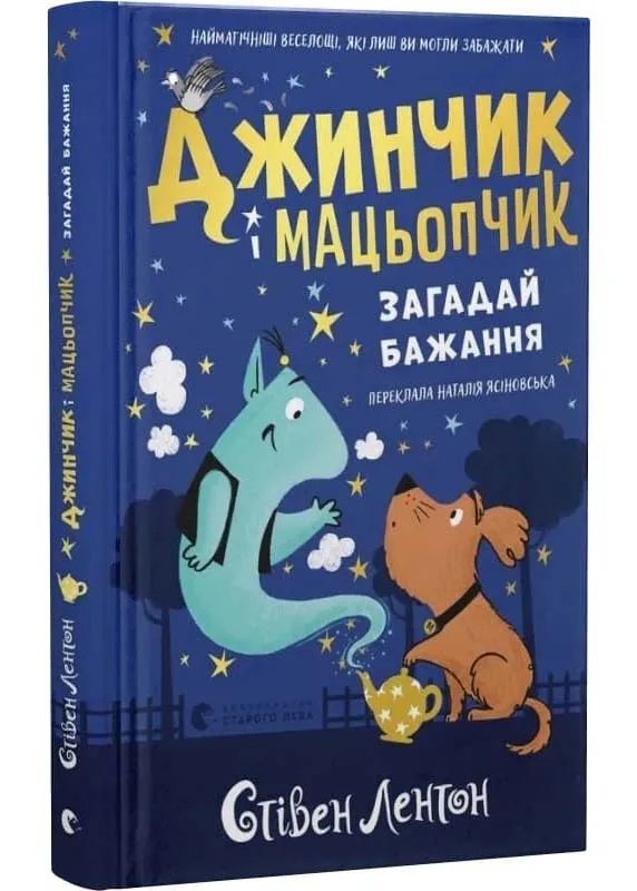 Книга Джинчик і Мацьопчик. Загадай бажання — це казкова пригода від Стівена Лентона, що захоплює юних читачів чарівним сюжетом, добротою та гумором. Сюжет розгортається навколо Ґранта — маленького джина, який був вимушений залишити Світ Джинів через одну невдалу помилку. Самотній, але сміливий джин потрапляє на Землю, де знайомиться з добродушним гігантським псом Мацьопчиком.