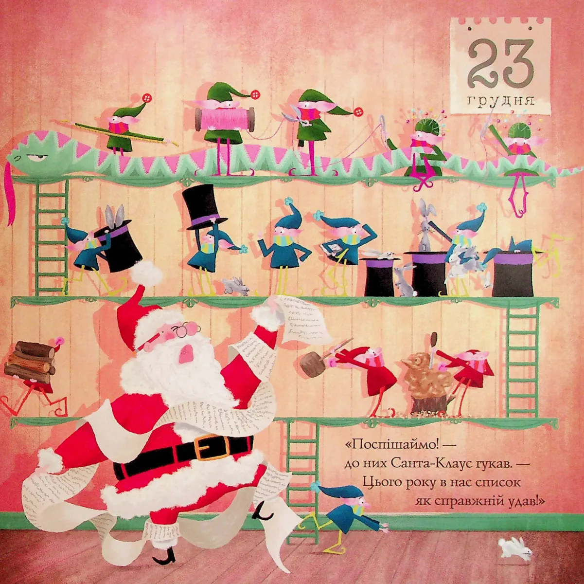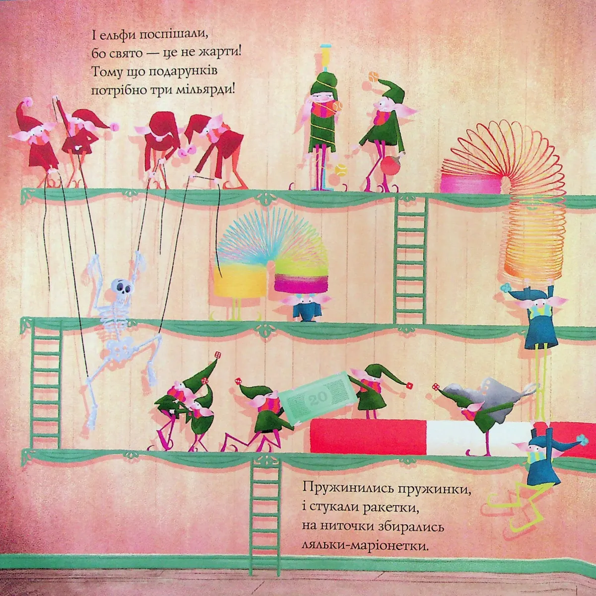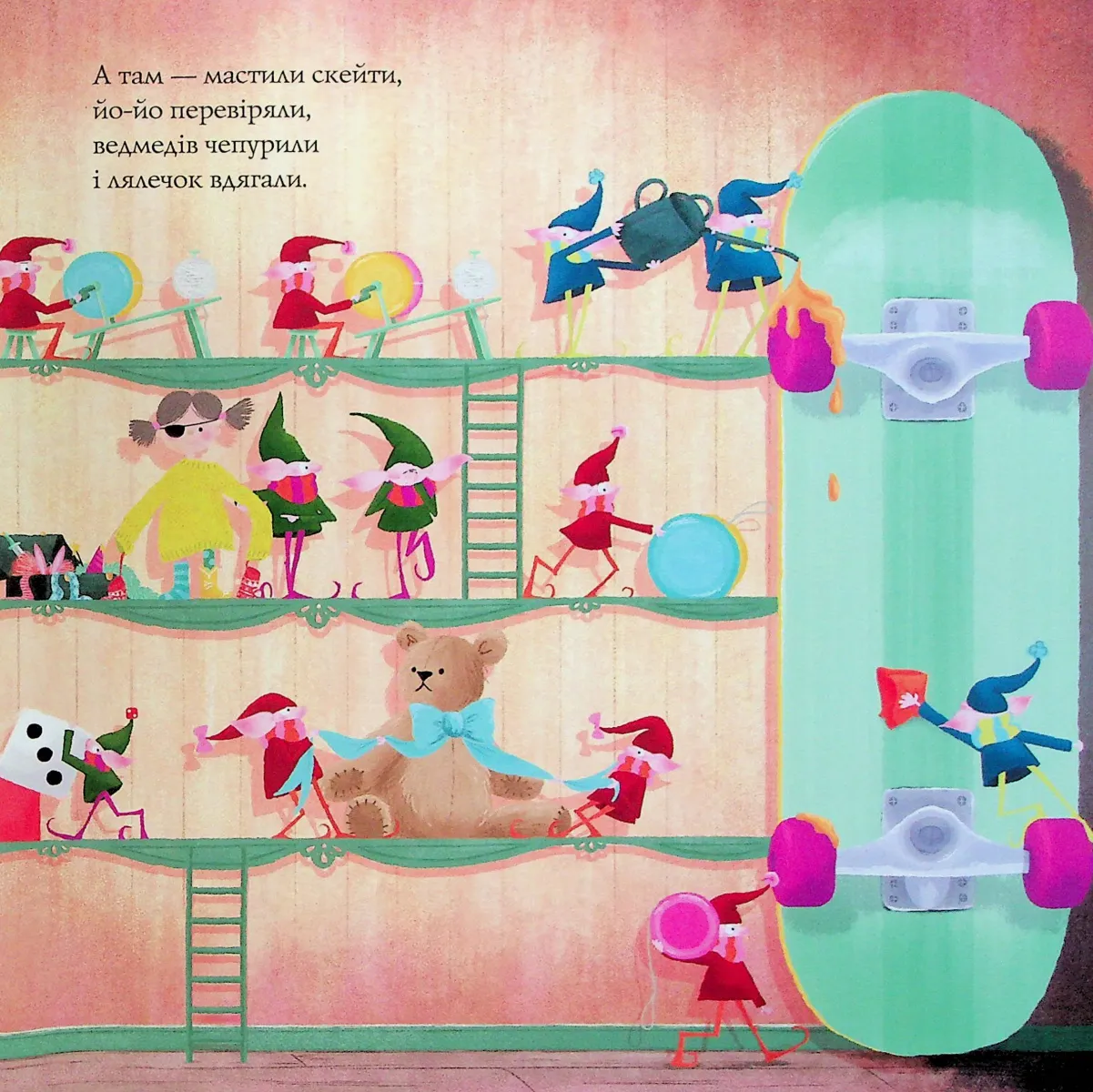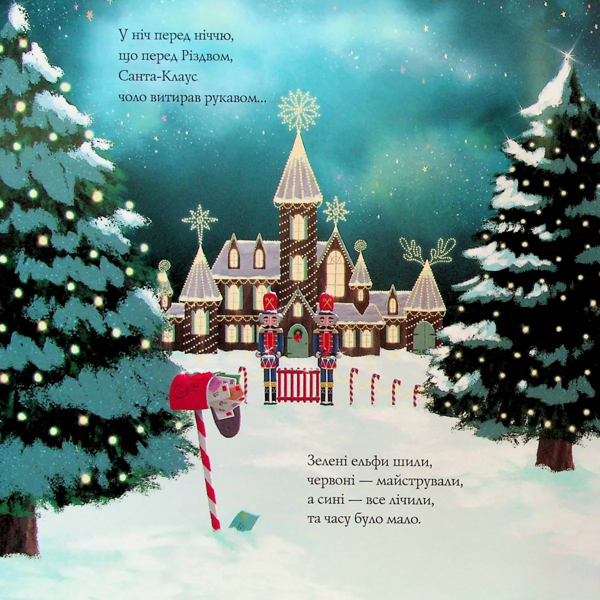 Над створенням історії працювала команда ілюстраторів, які додали книзі яскравих фарб і казкової атмосфери. Ельфи, сани, сніг і різдвяні дива — усе виглядає як справжня зимова казка.