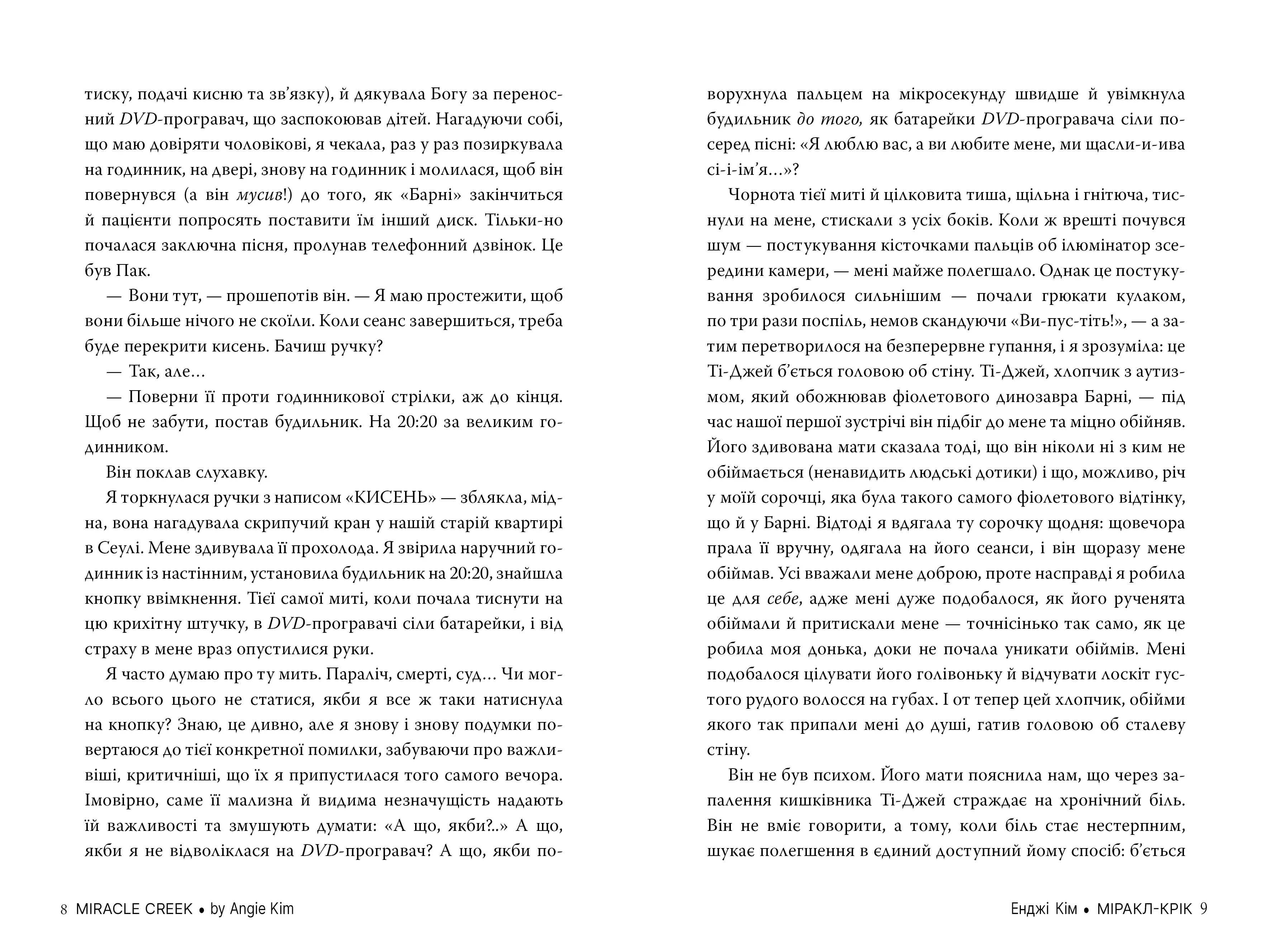 Книга Міракл-Крік в оновленому оформленні — захопливий детективний роман авторки Кім Енджі. Історія, що тримає у напрузі до останньої сторінки, змусить кожного замислитись над складною природою людських стосунків, морального вибору та справедливості.