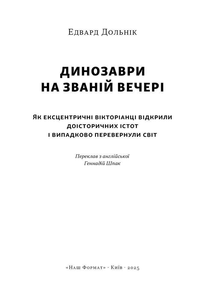 У книжці Едварда Дольніка оживають дивакуваті першовідкривачі: неосвічена Мері Еннінг, яка «бачила» скам’янілості у скелях; ексцентричний Вільям Бакленд, що перетворив свій дім на музей кісток; честолюбний Річард Оуен, який і вигадав слово «динозавр». Їхні допитливість, амбіції, боротьба за істину й геніальні здогадки перетворили випадкові знахідки на нову науку.