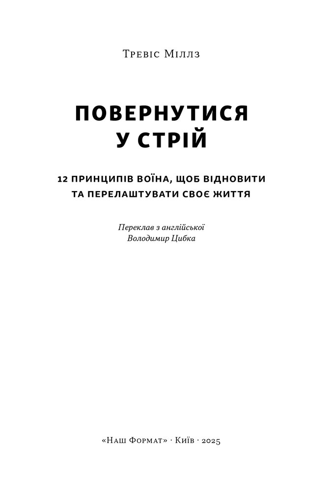 Тревіс розповідає, як вижив після страшного вибуху 12 квітня 2012 року в Афганістані. Про те, як узяв контроль над собою, — щоб і надалі залишатися чудовим сім’янином і виховувати двох діточок. На шляху до фізичного та емоційного відновлення він розробив 12 інструментів, як рухатися вперед. Бестселер New York Times надихне всіх, хто після травми знову хоче опанувати себе, а завдяки фірмовому гумору Міллза, схожим із його історіям і науково підтвердженим методам книжка допоможе кожному, хто готовий почати свій шлях до зцілення, протистоячи травмі, розуміючи свої емоції та повертаючи контроль над життям.