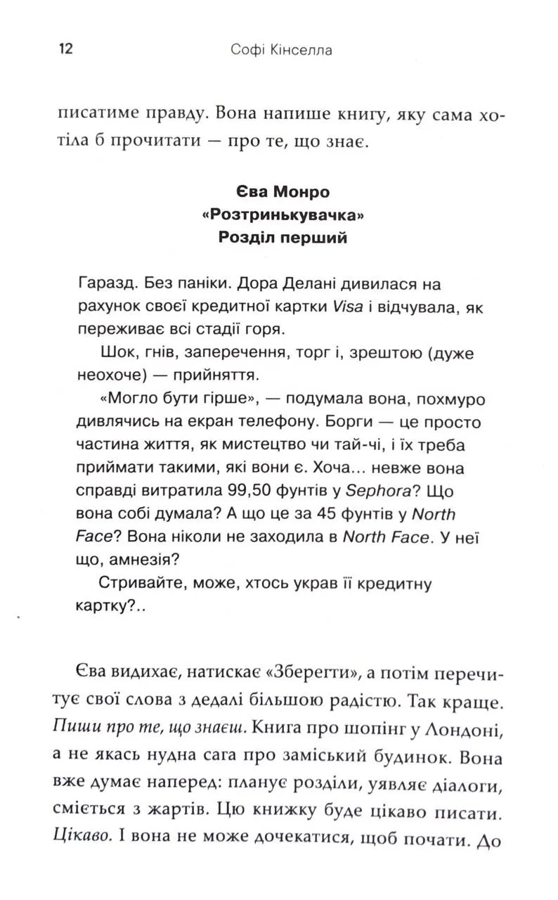 Софі Кінселла — британська авторка, відома серією романів про шопоголіку. Її книжки перекладені десятками мов, а тираж перевищує мільйони копій. Вона завоювала серця читачок у всьому світі завдяки гумору, теплу та життєвій мудрості, яку передає у своїх творах.