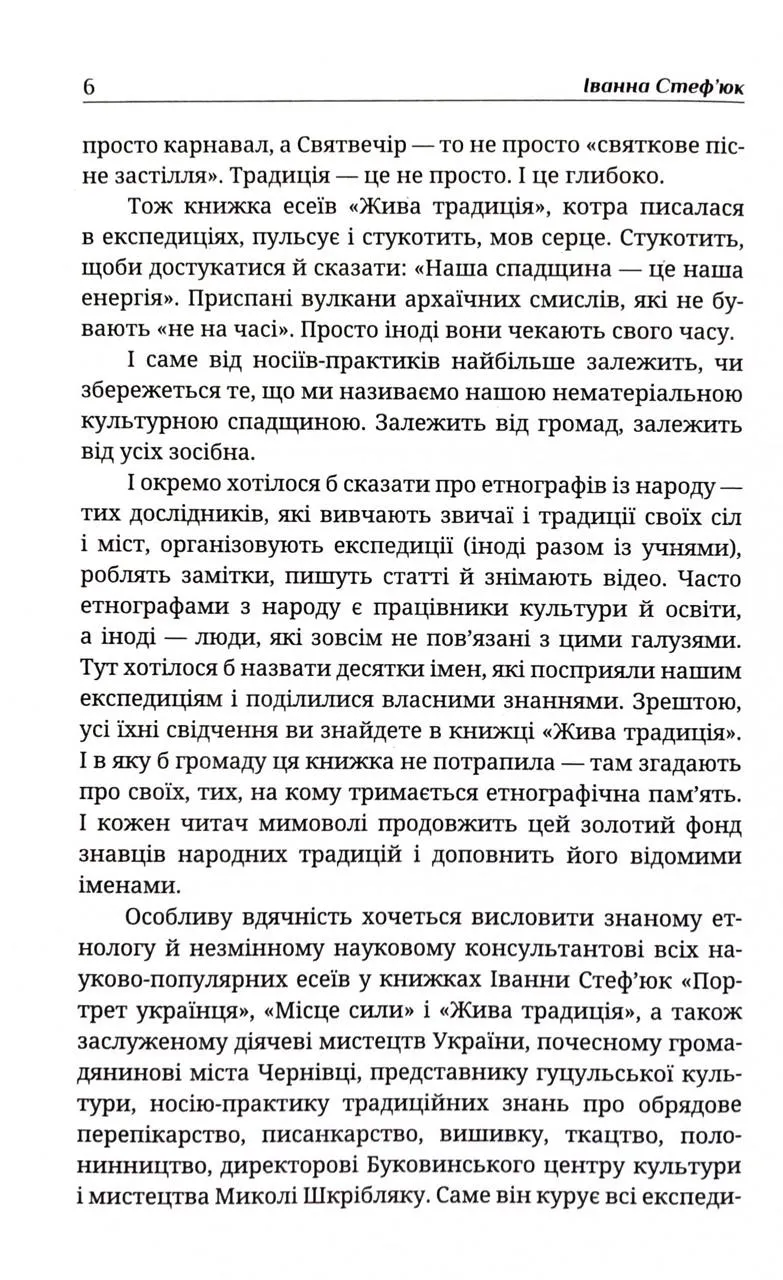 Жива традиція авторки Іванни Стеф’юк — це унікальна збірка етнографічних есеїв, яка презентує багатство нематеріальної культурної спадщини України. Видання розкриває, як народні звичаї, обряди та ремесла не просто зберігаються, а перетворюються на живу силу, здатну об’єднувати та надихати сучасне суспільство.