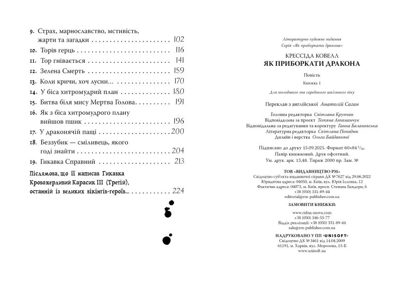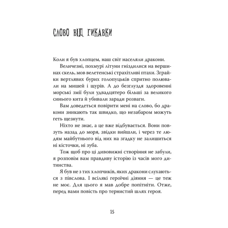 Книжка Як приборкати дракона. Книга 1 — це перша частина захопливої серії від британської письменниці Крессіди Коуелл. Історія про юного вікінга Гикавку, який вирушає здобути свого першого дракона, швидко стала бестселером серед підліткової літератури. У фентезійному світі, де звірі і люди живуть пліч-о-пліч, авторка зуміла передати боротьбу, гумор та шлях становлення справжнього героя.