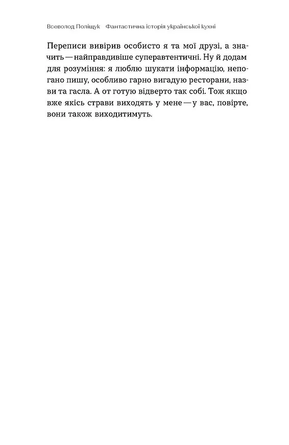Книга Фантастична історія української кухні відкриває унікальні сторінки нашої кулінарної спадщини. Автор — Всеволод Поліщук, журналіст, письменник і ресторанний маркетолог зі Львова, поєднує історичні факти, особисті дослідження та кулінарну автентику.