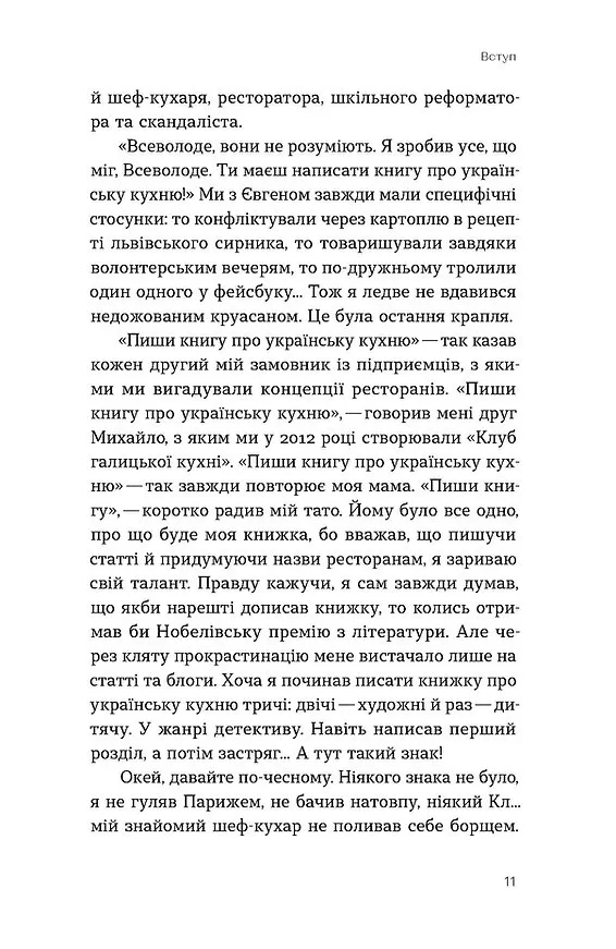 Всеволод Поліщук спростовує поширені міфи, зокрема щодо походження борщу, та пропонує осмислення страв як культурного феномену. Читачі дізнаються про восьминогів на гетьманських застіллях і картоплю в добу козацтва, сало як національний символ та перших вегетаріанців серед українців.