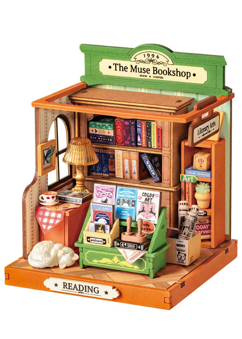Book Nook Kits The Muse Bookshop — це мініатюрна модель книжкової крамниці, яка стане чудовим подарунком для фанатів DIY-наборів і творчого відпочинку. Цей набір ідеально підходить як для початківців, так і для тих, хто прагне відволіктись від буденності, поринувши у створення атмосферного куточка для книг.