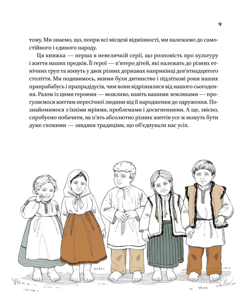 Історія починається з народження та супроводжується обрядами, звичаями й словами, що колись були буденністю. Від першого подиху — коли пуповину перерізає баба-повитуха — аж до українських весіль з їхніми піснями, танцями та багатою символікою. Це книжка про традиції, родинний уклад і ті елементи побуту, які зникають під тиском урбанізації.