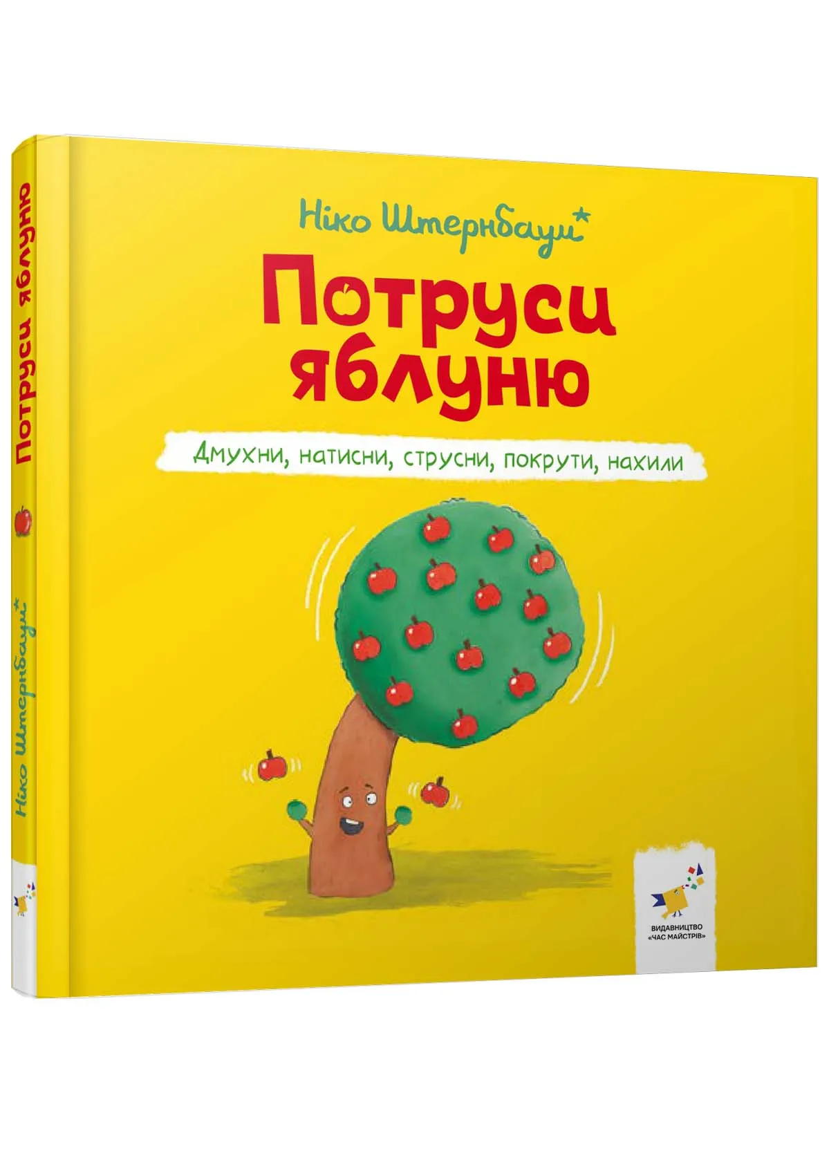Інтерактивна книжка Потруси яблуню авторства Ніко Штернбаума з девізом Дмухни, натисни, струсни, покрути, нахили — і все зміниться! стала справжнім відкриттям для дітей та батьків. Це сучасний формат дитячої літератури, де дитина не просто слухач, а активний учасник подій.