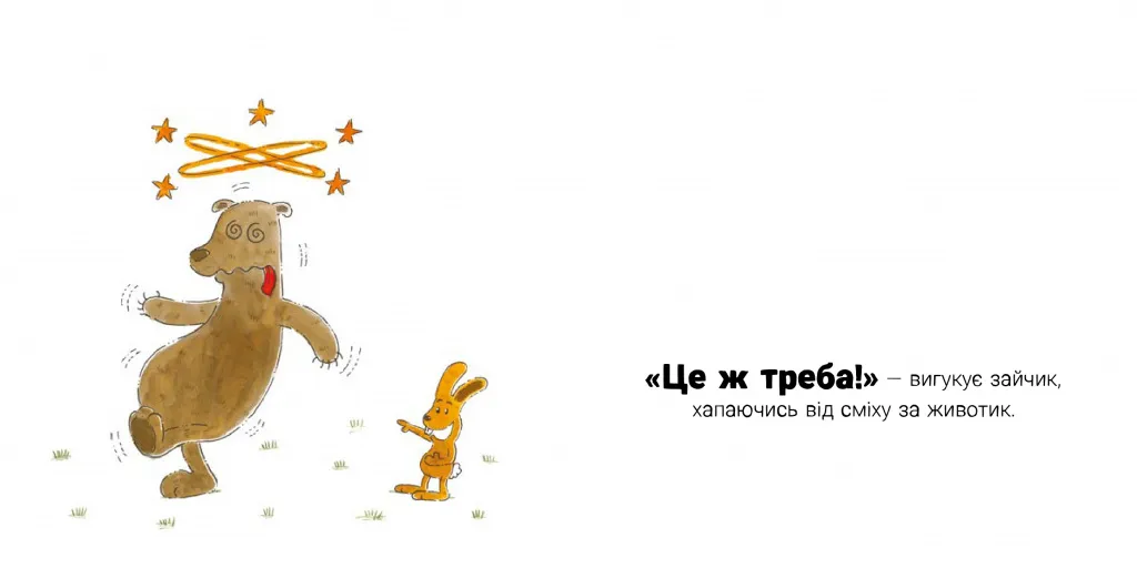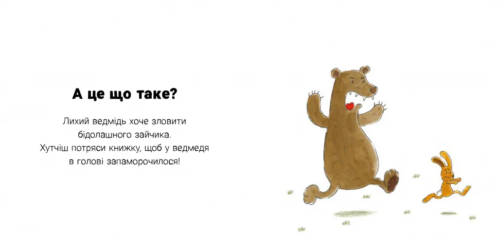 Кожна сторінка книжки пропонує дитині виконати просту дію, яка впливає на сюжет. Наприклад: