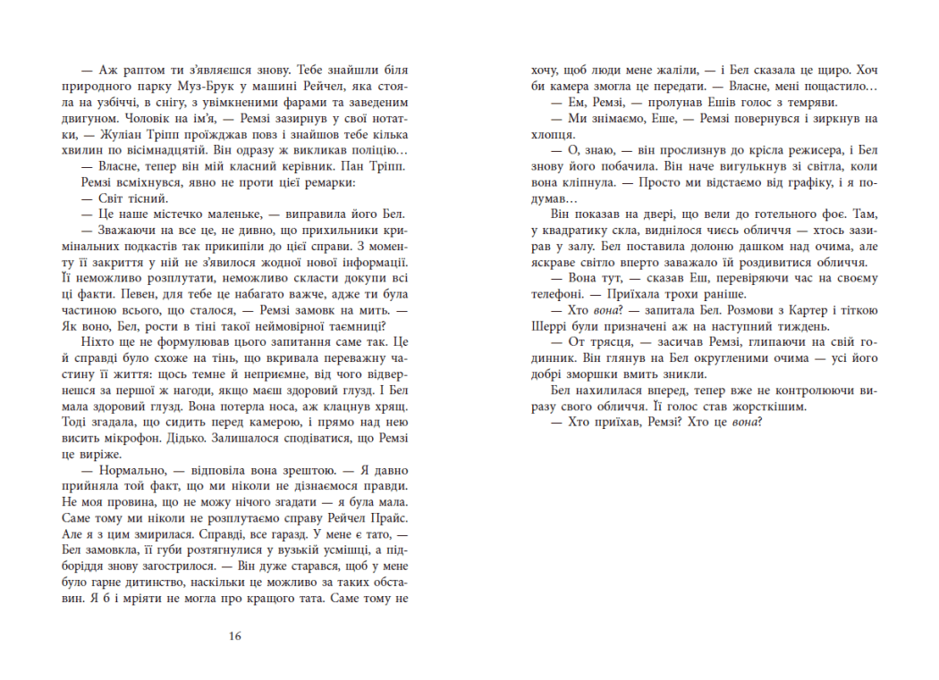 Шістнадцять років тому Рейчел Прайс зникла. Наче випарувалась, залишивши дворічну дочку Бел в автівці на узбіччі. Рейчел давно вважають загиблою, проте соцмережі ніяк не можуть вгомонитися, і зниклу нібито помічають то у Франції, то в Бразилії, навіть десь поблизу — у Нью-Гемпширі. І родині Прайсів пропонують взяти участь у зйомках документального фільму про ті події. Хай як Бел неприємна перспектива копирсання в минулому, вона пообіцяла батькові, тож мусить якось усе це перетерпіти, поки життя знов не стане нормальним.І тут несподівано Рейчел Прайс з’являється. І життя вже ніколи не стане нормальним. Історія Рейчел неймовірна. Та чи правдива? Поки камери працюють, Бел мусить це з’ясувати.