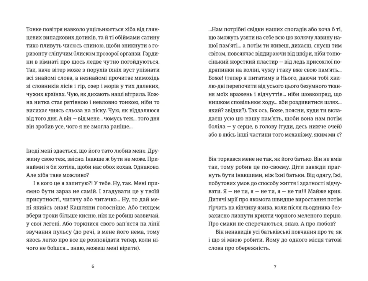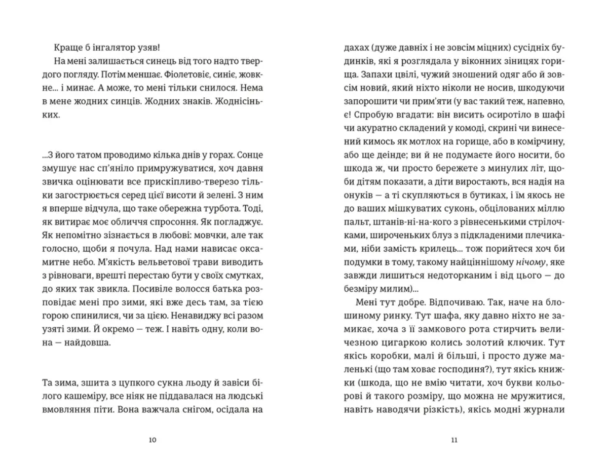 У цій книжці короткої прози авторка дає силу жіночому голосу говорити про важливе, майже інтимне. Тут кордон між країнами стає фізичним кордоном людини, її емоційною граничністю. Ця межовість дуже відчутна після втрати дому, коли життя перетворюється на збирання себе по крихтах в умовах складних досвідів. Ці досвіди важко ословлюються, вони до болю загострюють чуття, вони проникають під шкіру, безнадійно розсипаються, самотньо губляться серед трагічної буденності, але їх потрібно відрефлексувати, щоб жити далі.