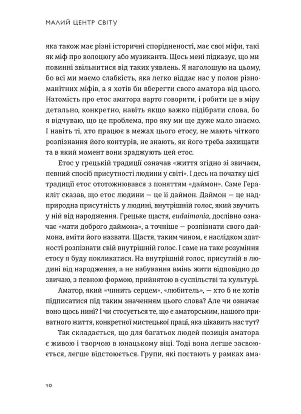 Книга Малий центр світу від видавництва Видавництво Старого Лева розкриває глибоку філософську та соціокультурну ідею особистої причетності до розбудови світу через створення власного простору. Автор — Кшиштоф Чижевський, польський есеїст, митець та громадський діяч.