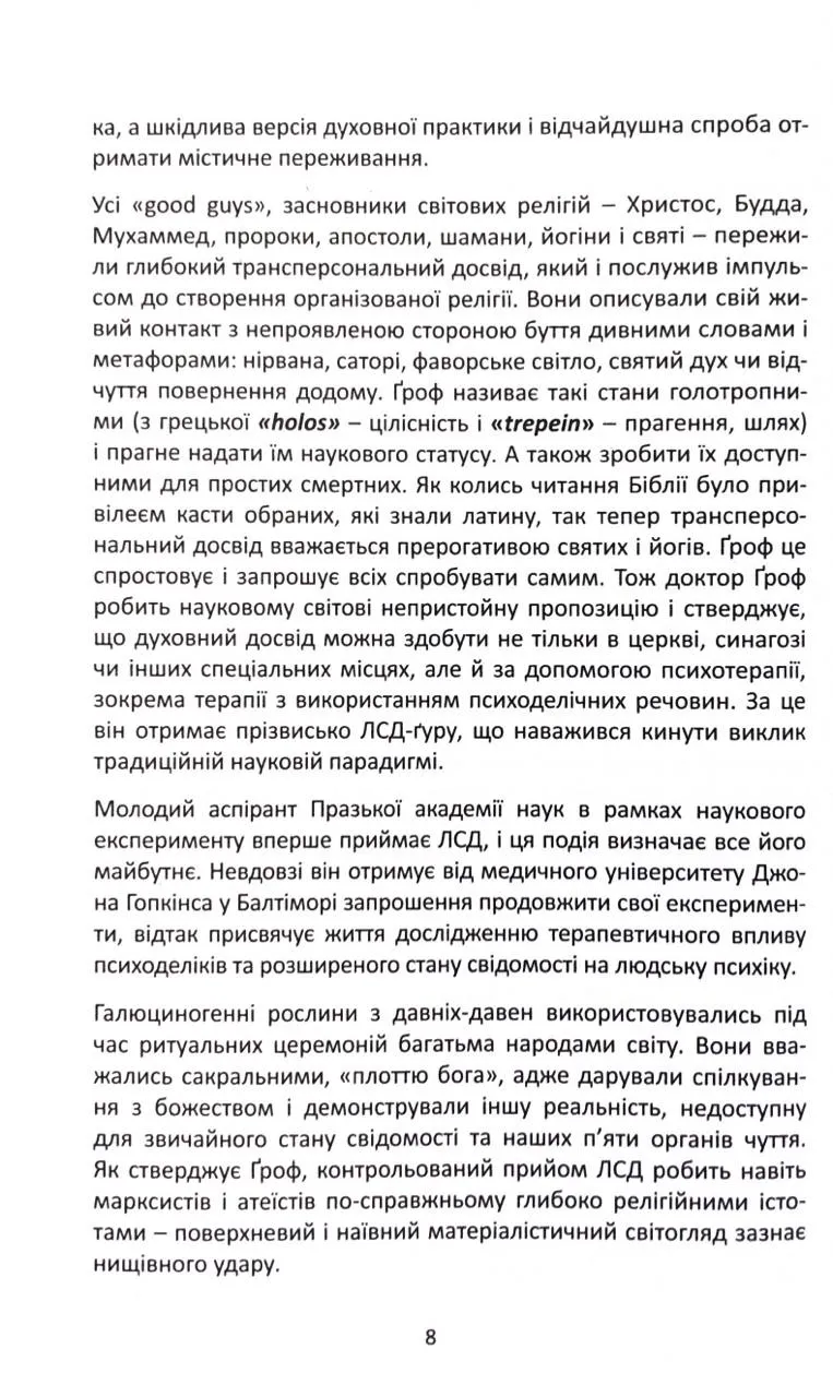 Це не просто наукова праця — це запрошення до трансформаційної подорожі самопізнання. Станіслав Ґроф відкриває нову картографію людської свідомості, яка виходить за межі традиційної психології та медицини.