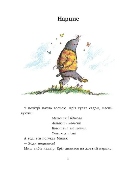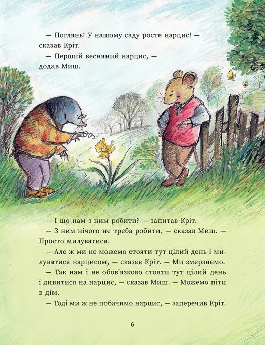 У центрі книги – двоє кумедних персонажів: Миш і Кріт. Вони – найкращі друзі, життя яких сповнене пригод, переважно несподіваних. Такі сюжети не лише розважають, а й вчать важливим речам – бути поруч у складні миті, допомагати і підтримувати один одного.
