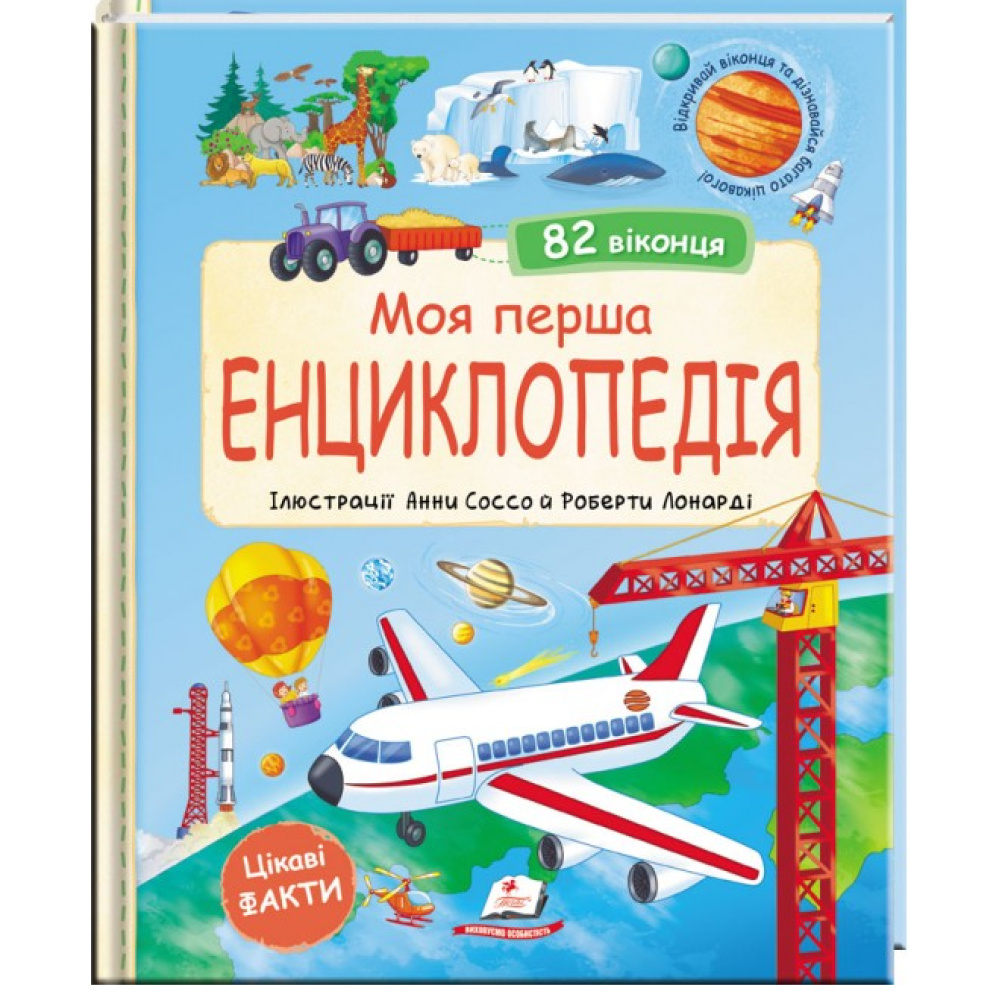 «Моя перша енциклопедія» із серії «Світ у віконцях» — унікальна книжка великого подарункового формату 245×300 мм, яка перетворює навчання на веселу гру.