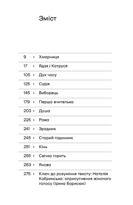 До видання Хмарниця. Оповідання увійшли кращі твори Наталі Кобринської, серед яких: