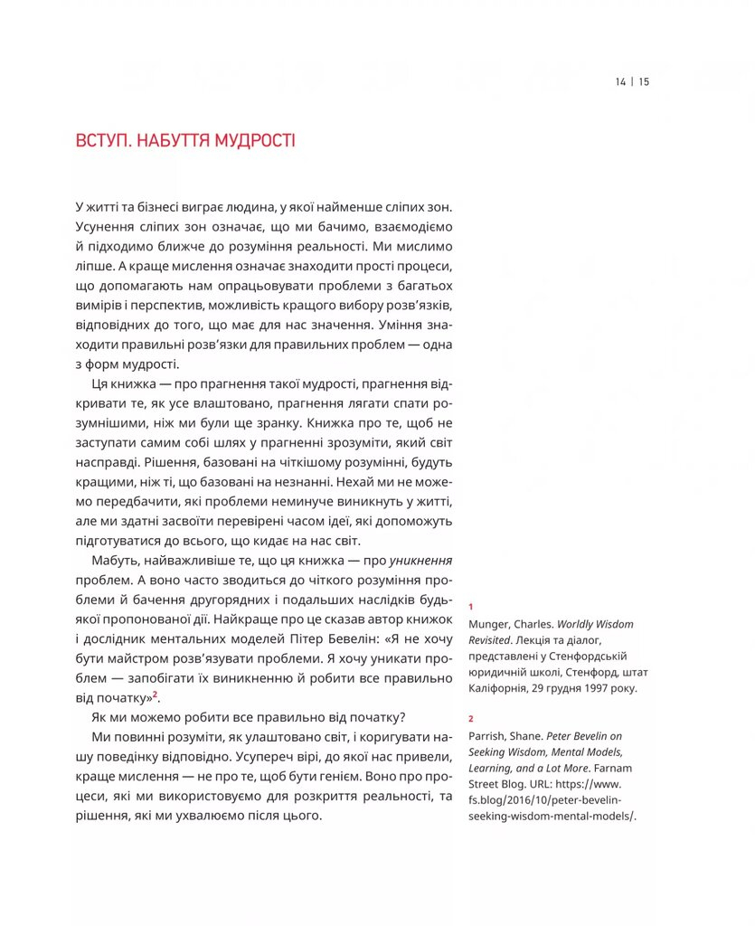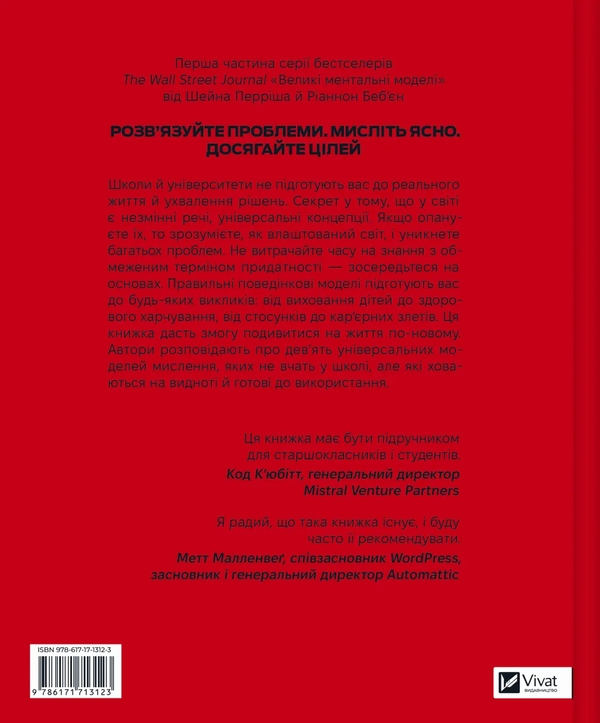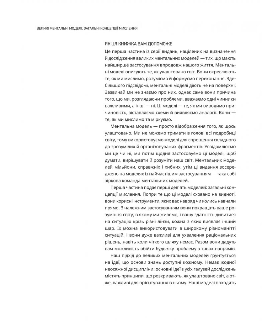 Школи та університети не завжди навчають нас справжньому мистецтву прийняття рішень. У цій книжці автори пояснюють, що опанування ментальних моделей дозволяє глибше зрозуміти механізми світу, ухвалювати точніші рішення та уникати типової помилкової логіки.