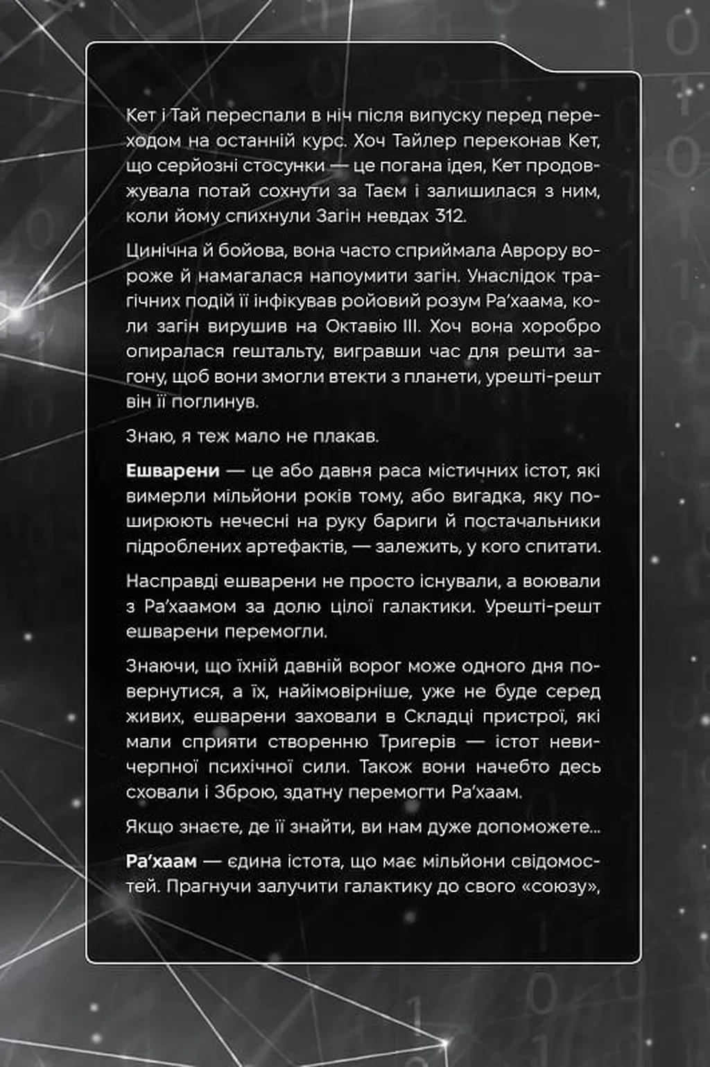 - Динамічна та емоційна історія, що не залишить байдужим жодного фаната фантастики.