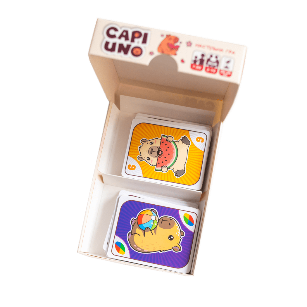 Милий дизайн капібар, які прикрашають усі картки, став справжнім візитівкою CAPIUNO. Ці герої викликають усмішку, додають позитиву та стали трендом у багатьох спільнотах соцмереж. Саме тому гра ідеально підходить для сучасної молоді, дітей та дорослих.
