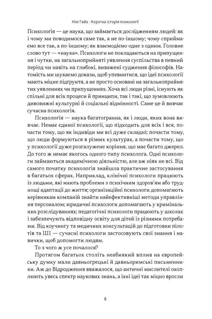 Книга Коротка історія психології від авторки Нікі Гейз — це надзвичайно захопливий огляд головних етапів розвитку психологічної науки. Якщо вас коли-небудь цікавило, що насправді керує нашими рішеннями або звідки береться мова та пам’ять, ця книга стане для вас справжнім відкриттям.