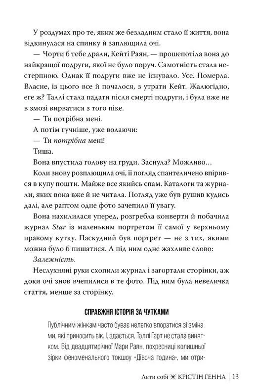 Це ідеальний вибір для всіх, хто цінує зворушливу прозу з глибокими персонажами. Якщо вам сподобались попередні твори Крістін Генни або книги про сильну жіночу дружбу, то Лети собі стане гідним продовженням у вашій колекції.