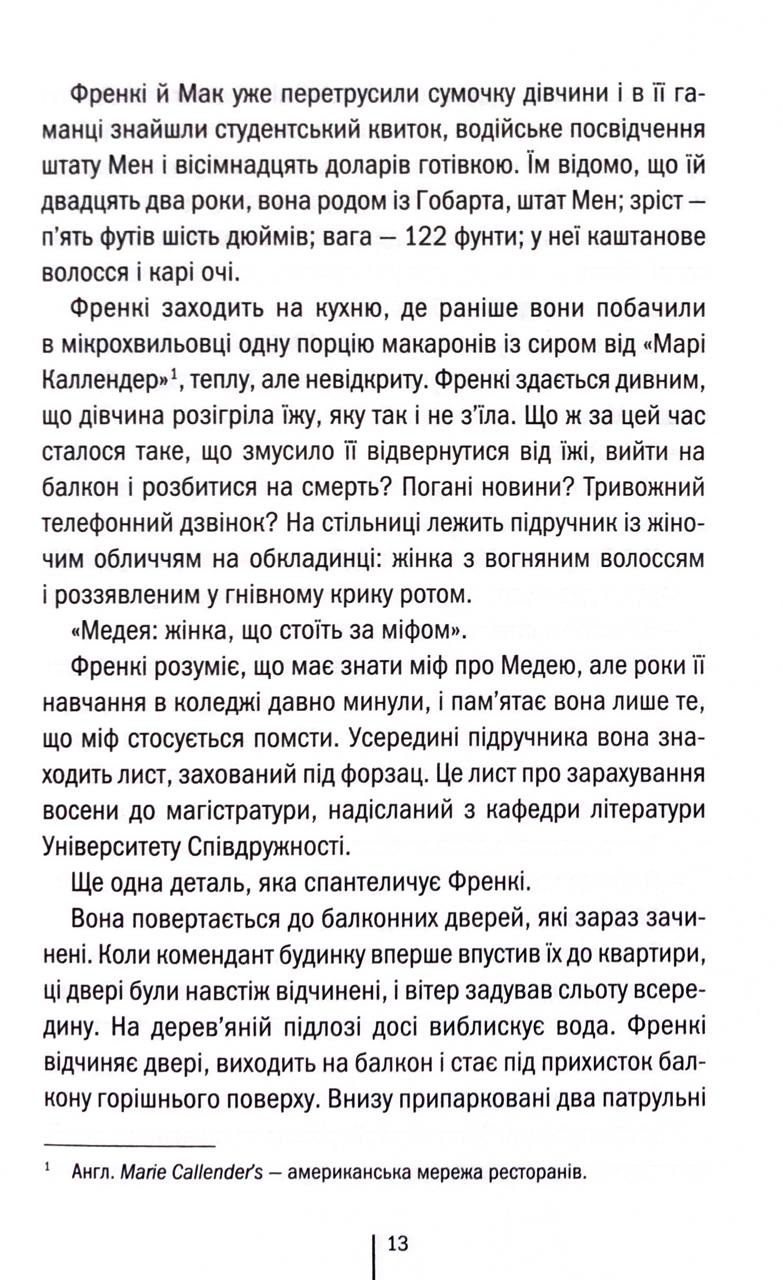 Події роману розгортаються навколо загадкової смерті студентки Терин Мур. Її тіло знаходять під гуртожитком Університету Співдружності. Випадковість чи продумане вбивство? Сліди не вказують на самогубство, хоча на вигляд молода й обдарована дівчина не мала причин накласти на себе руки.