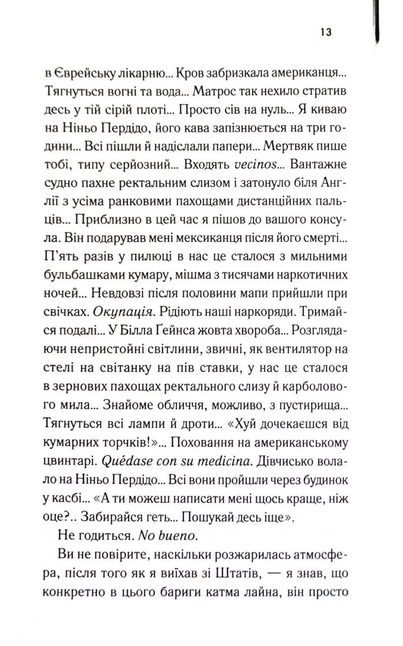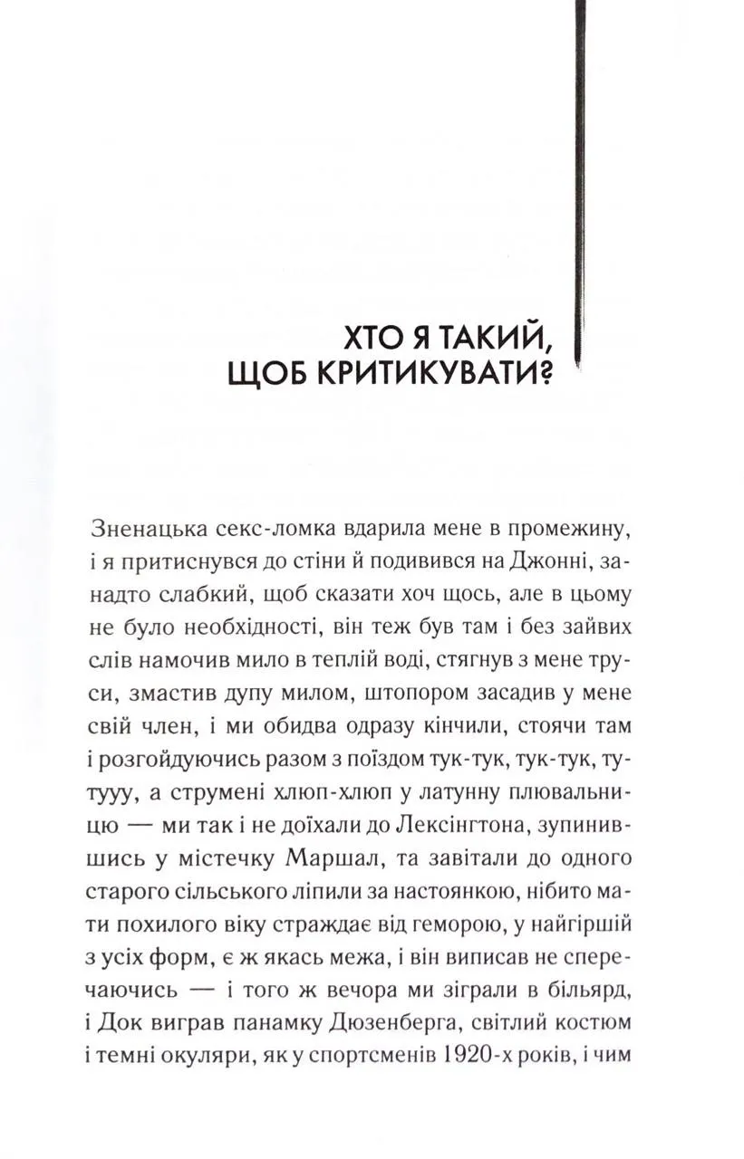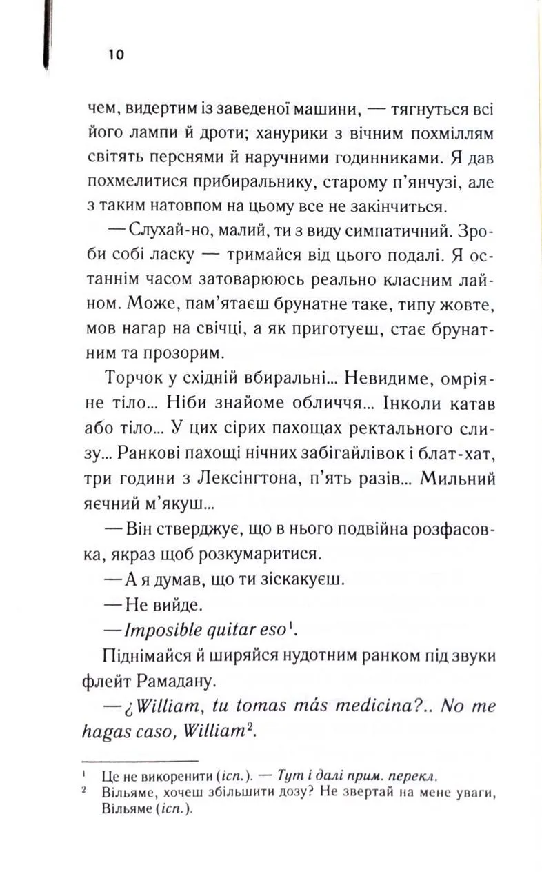 Зауважте, що ця книжка містить контент, який може бути неприйнятним або шокуючим для багатьох читачів. Твір відзначається експериментальною формою, відсутністю класичної сюжетної лінії та навмисним порушенням граматичних і пунктуаційних норм. У тексті присутні сцени насильства, сексуального характеру, вживання наркотиків, психологічні розлади та інші чутливі теми. Книга призначена для читачів віком від 18 років.