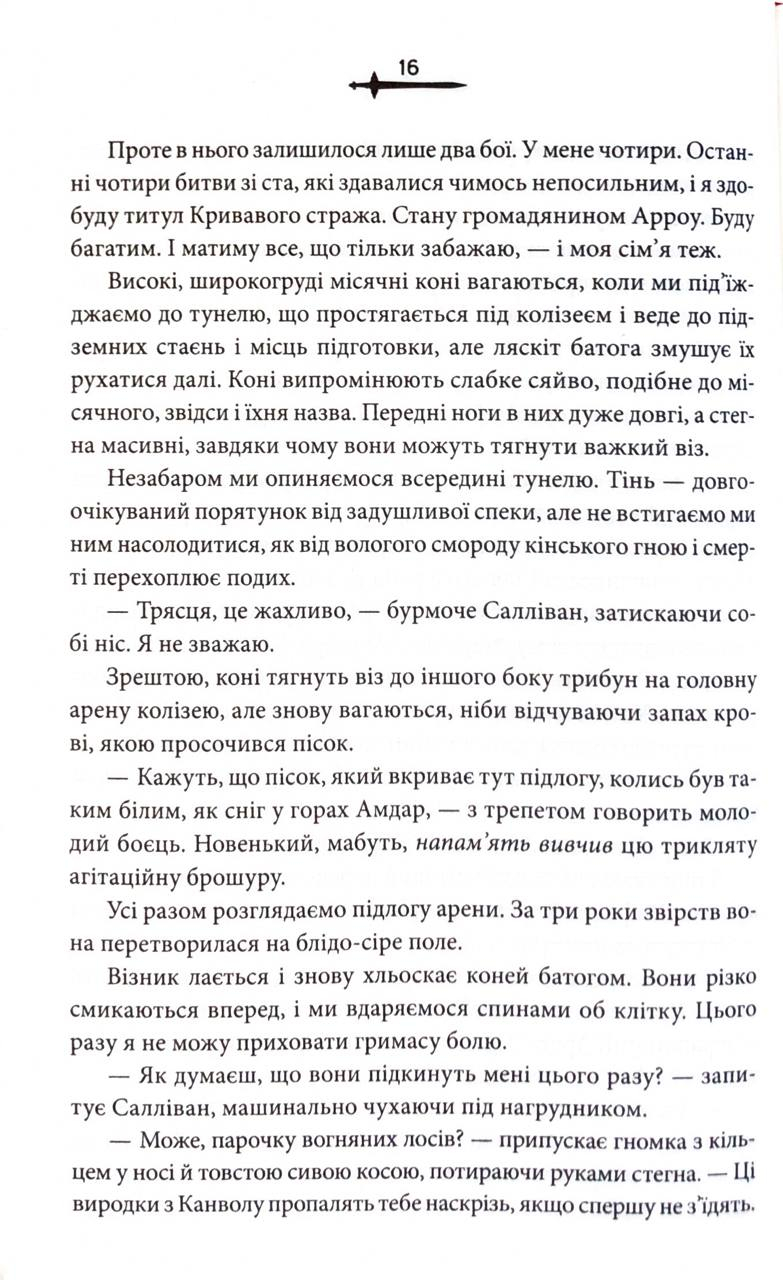 Кривавий страж. Книга 1 від Сесі Робсон — захоплива історія про гладіаторську арену Арроу, де виживають лише найсильніші. Сотні років і десятки тисяч гладіаторів, і сьогодні один із них повстане…