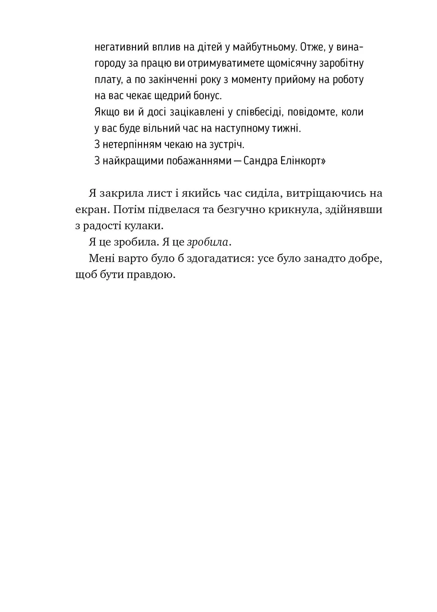 Роман досліджує теми довіри, провини та маніпуляцій, показуючи, як страх і напруга можуть спотворити реальність. Це історія про те, що зло іноді ховається не в темряві, а за бездоганно чистими фасадами сучасного життя.