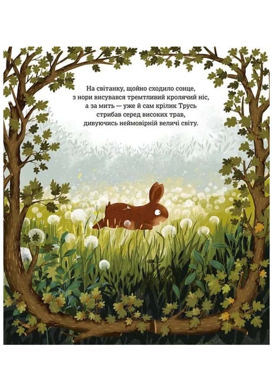 У підніжжі старого могутнього дуба живе кроляча родина, а високо в кроні, в затишному дуплі, мешкає совина сім’я. Хоча вони живуть зовсім поруч, зустрітися їм нелегко. Адже коли кроленя Трусь стрибає серед теплих сонячних трав, маленька сова Сплюшка міцно спить. А коли Сплюшка розправляє крила, щоб політати у сяйві місяця, Трусь якраз засинає.