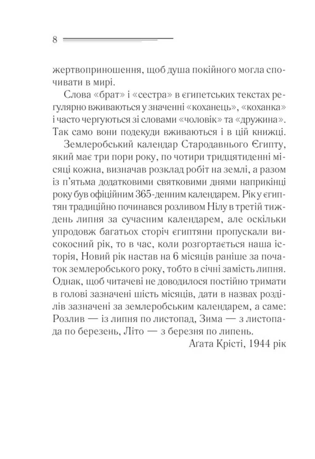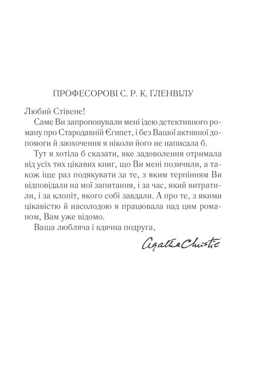 Аґата Крісті — всесвітньо відома королева детективу. Близько мільярда примірників її книг продано англійською мовою, ще один мільярд — перекладено понад 100 мовами світу. Вона — найпопулярніша письменниця всіх часів, чиї твори поступаються за кількістю перевидань лише Біблії та Шекспіру. Її детективи, сповнені інтриги, психологічної напруги й непередбачуваних розв’язок, увійшли в золотий фонд світової літератури.