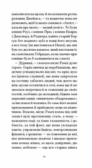 На позір у творі майже не відбувається подій, але справжнє життя розгортається у свідомості персонажів. Саме в думках вирують переживання, сумніви, внутрішні конфлікти та суперечки, про які не говорять уголос. Роман фіксує крихкі миті існування, показуючи, як час змінює людей, стосунки та саму пам’ять.