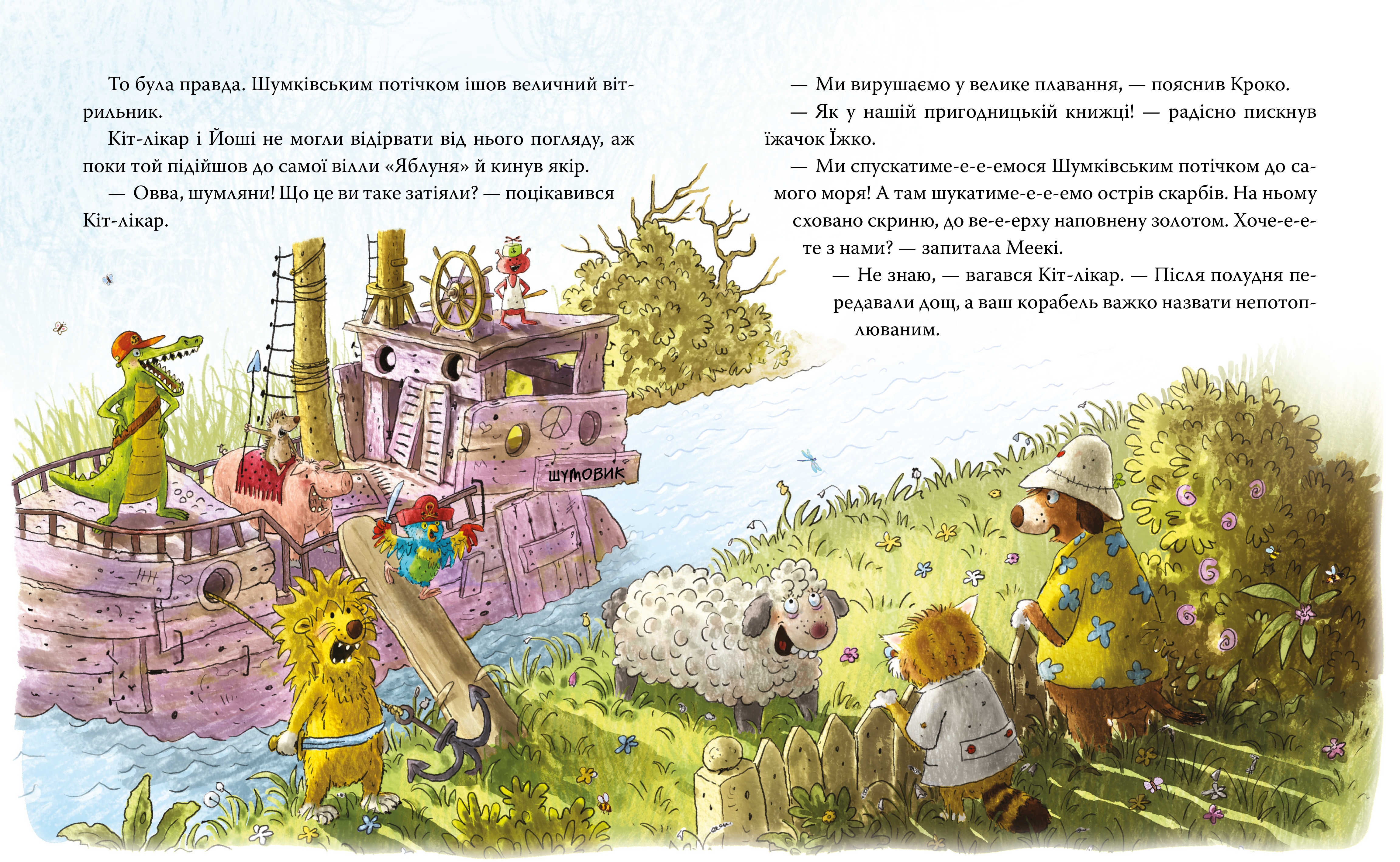 Кіт-лікар. Подорож на острів скарбів чудово підійде для дітей віком від 5–8 років. Книга розвиває уяву, навчає не боятися труднощів і показує, як важливо підтримувати друзів навіть у найбуремніші моменти.