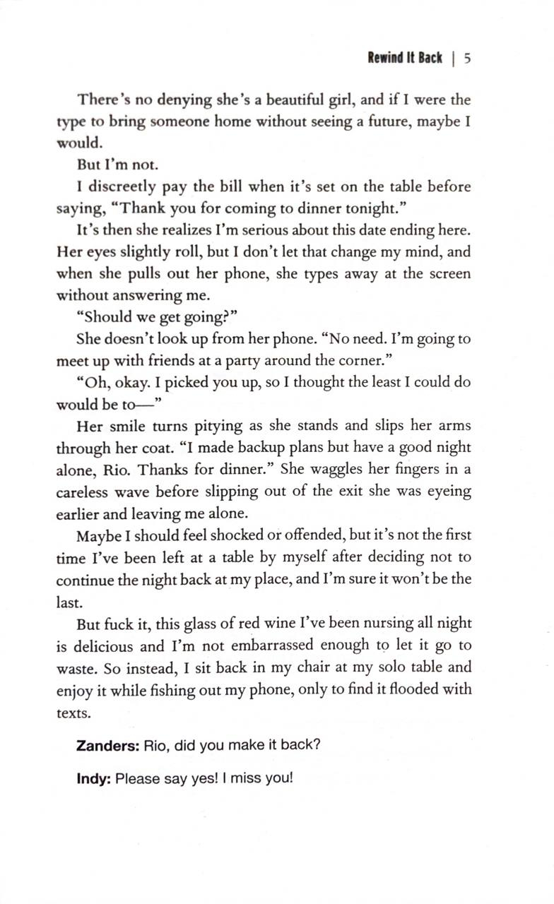 Книга Відмотай назад (Rewind It Back) — це п'ята, надзвичайно емоційна частина серії Місто вітрів від Ліз Томфорд. Після бейсболу та баскетболу ми повертаємося на лід разом із хокеїстом Ріо ДеЛюкою в історії, де на перший план виходить троп «другий шанс» (second chance romance).