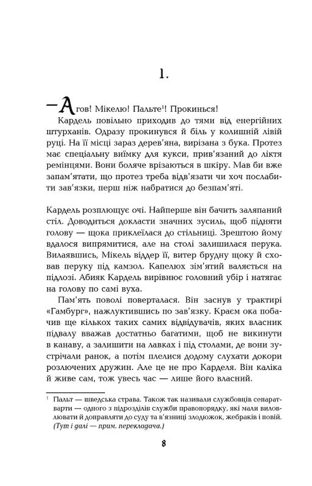 - Неймовірна деталізація: автор створює ефект повної присутності в Стокгольмі XVIII століття — з його запахами, звуками та звичаями.