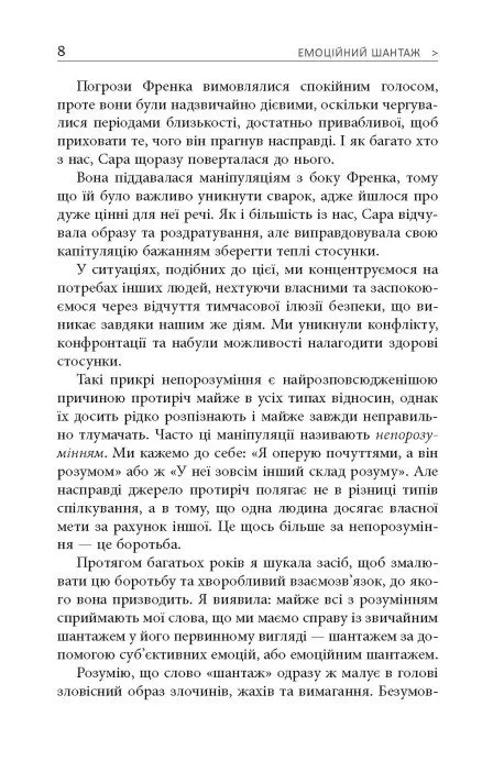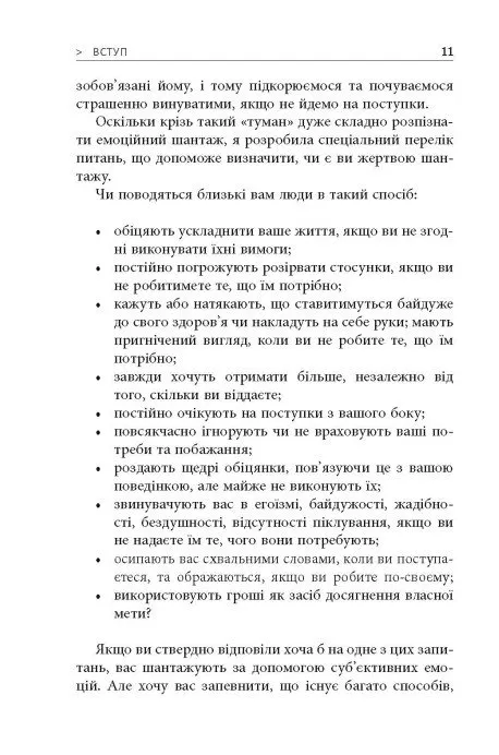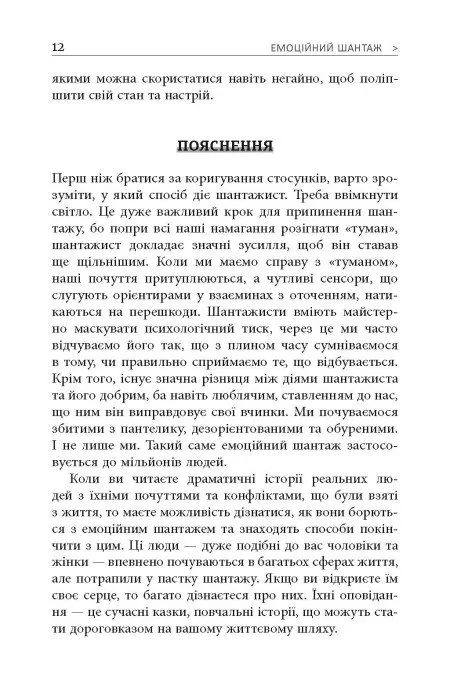 - Чітка класифікація: авторка виділяє чотири типи шантажистів, що допомагає легко ідентифікувати проблему у вашому житті.