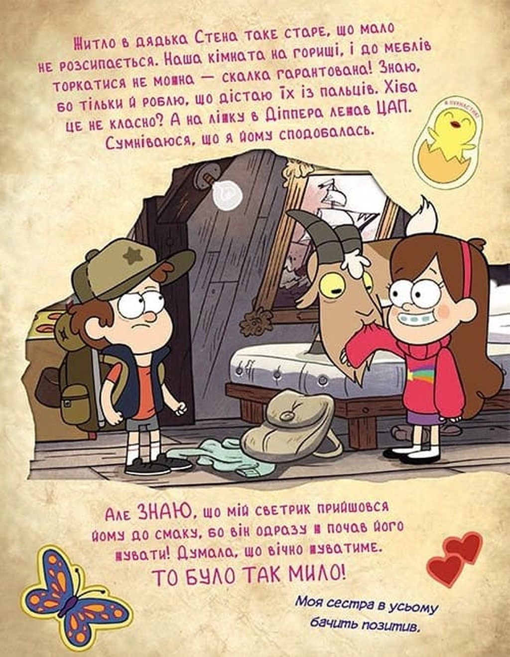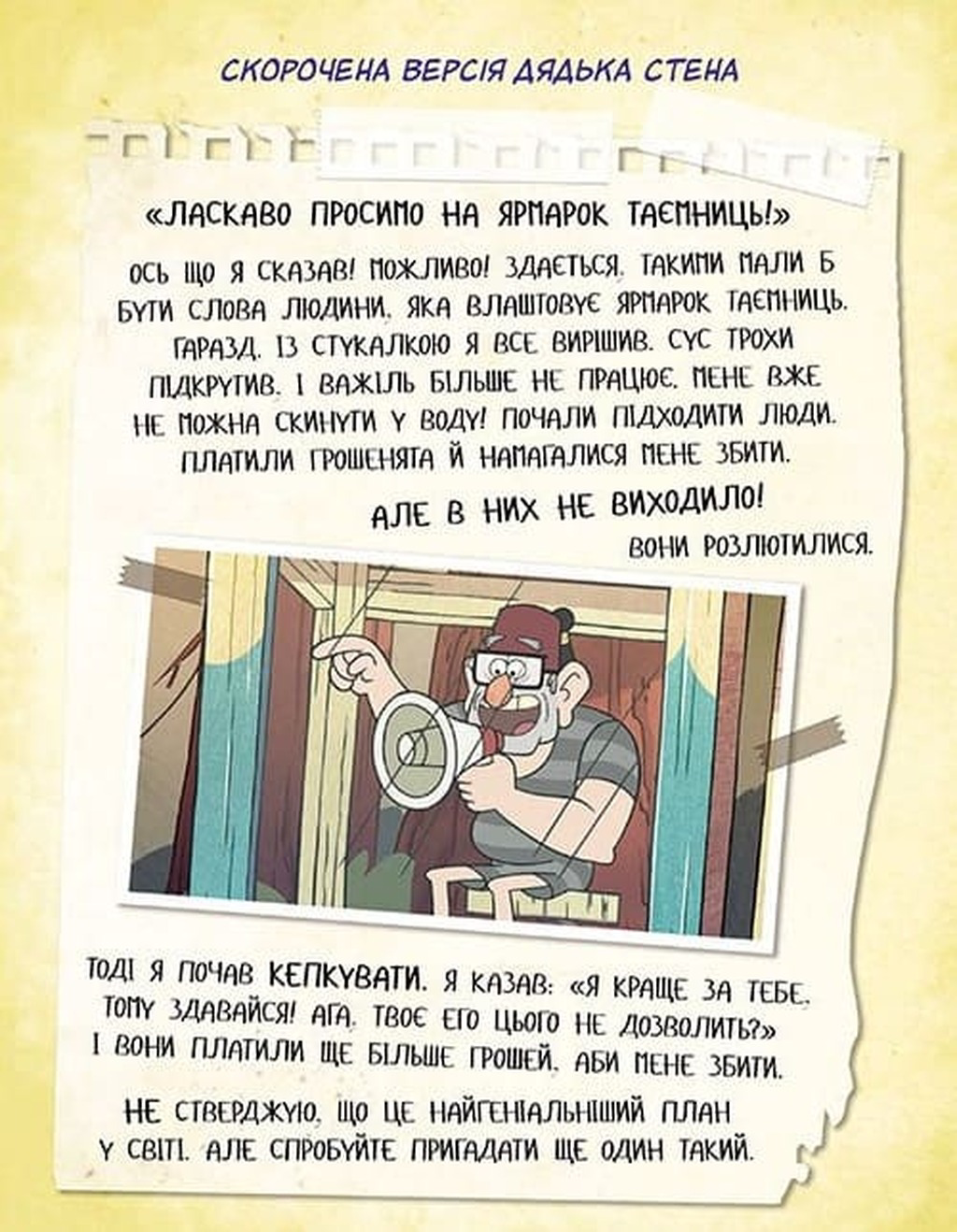 - Коментарі від Стенлі: навіть грубий, але (можливо) люблячий дядько Стен вставив свої п'ять копійок у розповідь.