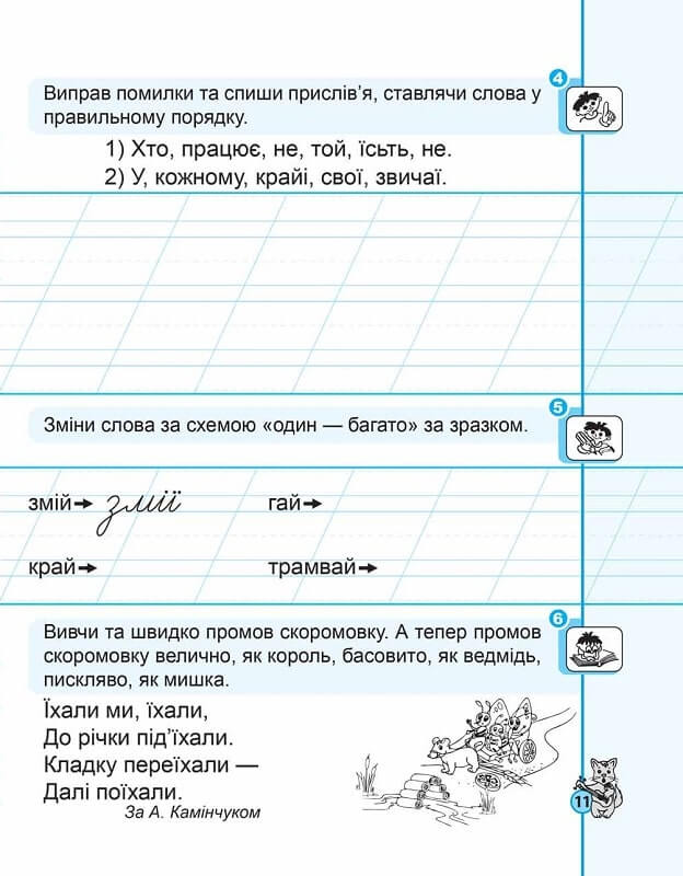Зошит укладено відповідно до чинної програми навчання грамоти в першому класі, призначено для використання у післябукварний період. Посібник можна використовувати для продовження занять після закінчення роботи над будь-яким букварем.