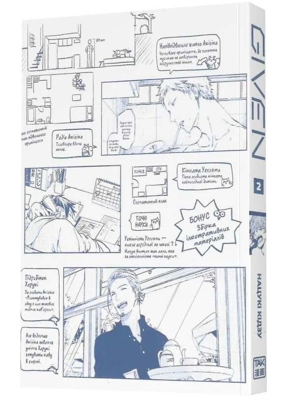 Given. Том 2 — це продовження неймовірно чуттєвої та глибокої історії від Нацукі Кідзу про музику, втрату та зародження нових почуттів. Якщо перший том знайомив нас із героями, то другий занурює у вир емоційного хаосу, який неминуче супроводжує творчість та перше кохання. Це історія про те, як важко підібрати слова, коли душа переповнена болем минулого та невпевненістю у майбутньому.
